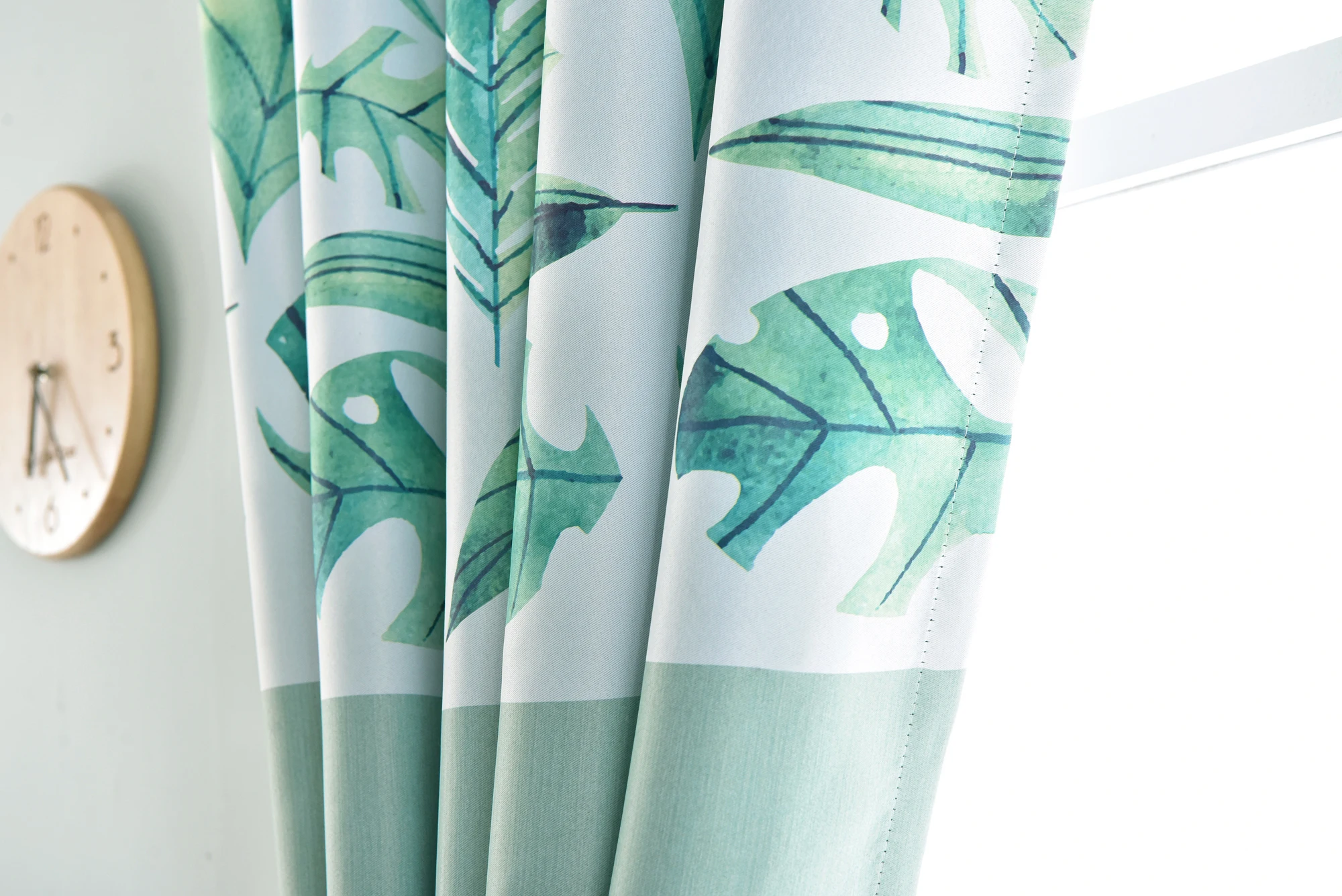 Современные затемненные шторы с принтом зеленых растений, занавески...