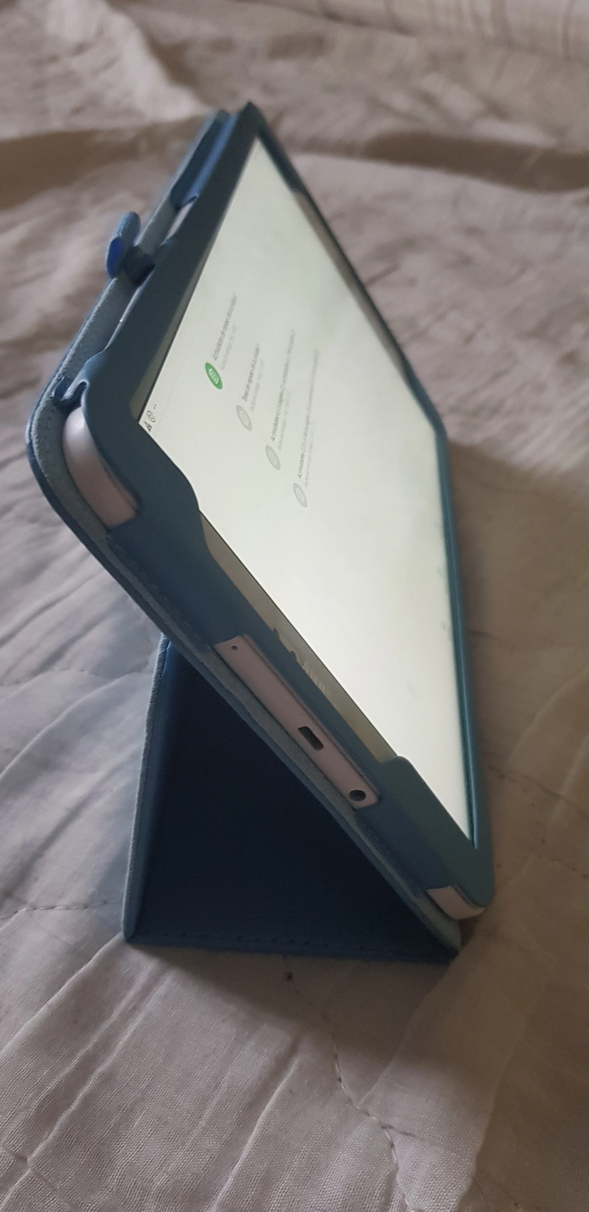Чехол пришёл очень быстро, спасибо продавцу за быструю отправку. Товар полностью соответствует описанию, с виду качество хорошее. Хочу отметить приятный бонус - защитную плёнку на экран планшета. Стоит своих денег. Очень рада, спасибо.