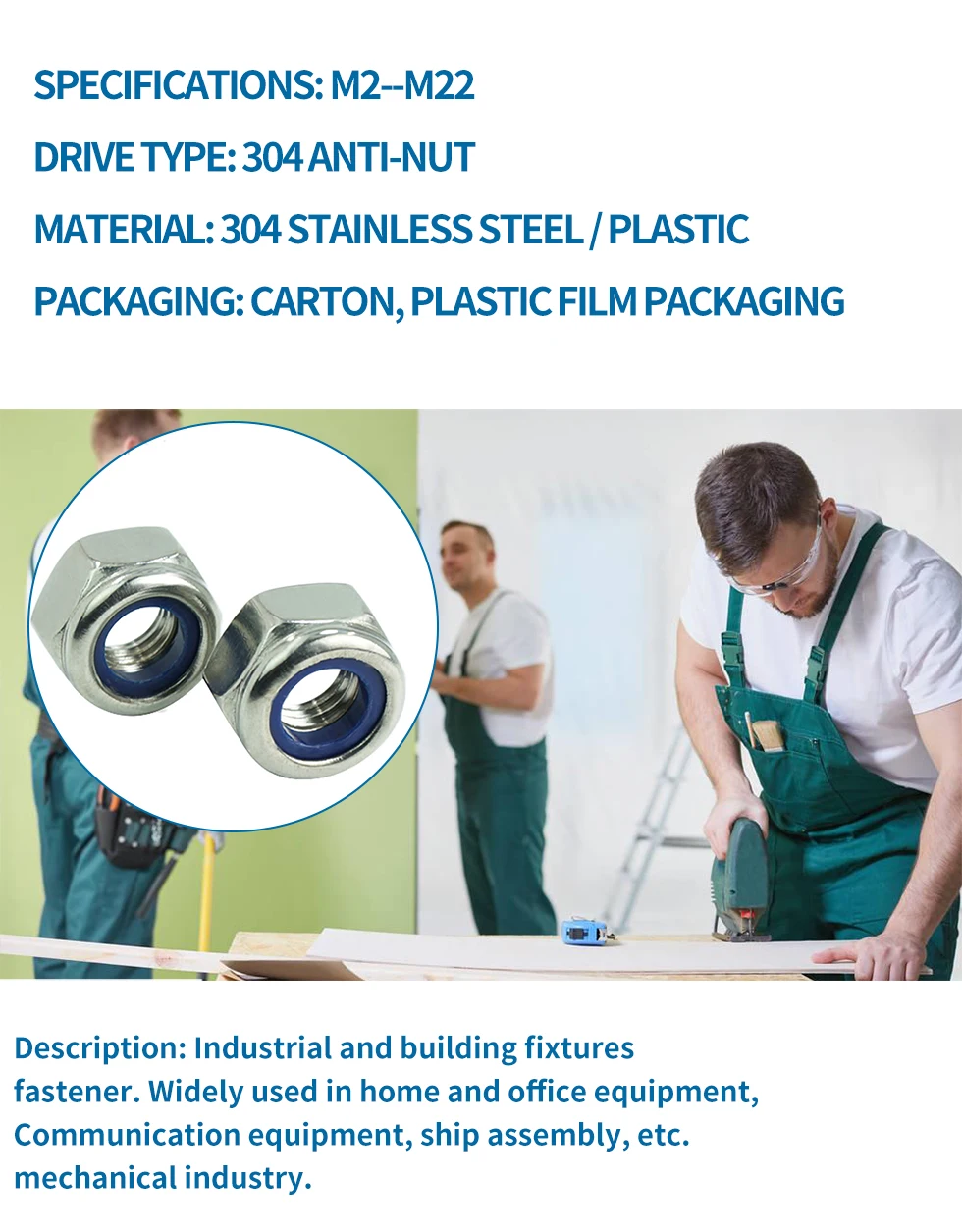 LUCHANG M3 M4 M5 304 нержавеющая сталь нейлон Шестигранная самоблокирующаяся резьба Шестигранная гайка с блокировкой скольжения Зажимная Механическая гайка