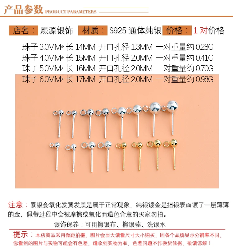 Шарик: 6 мм * Длина: 17 мм * отверстие: 2,0mm * Вес: 0,98 г (пара)