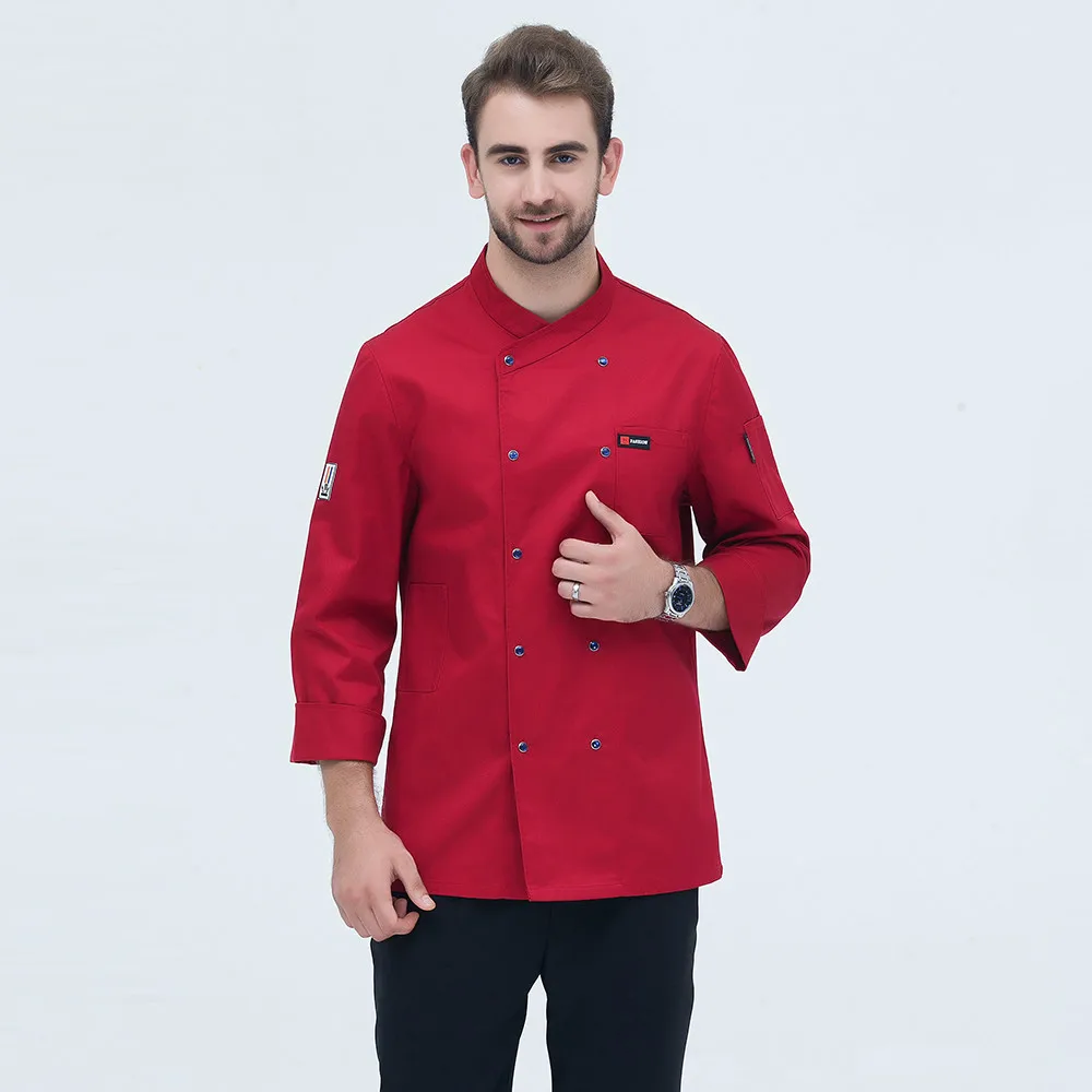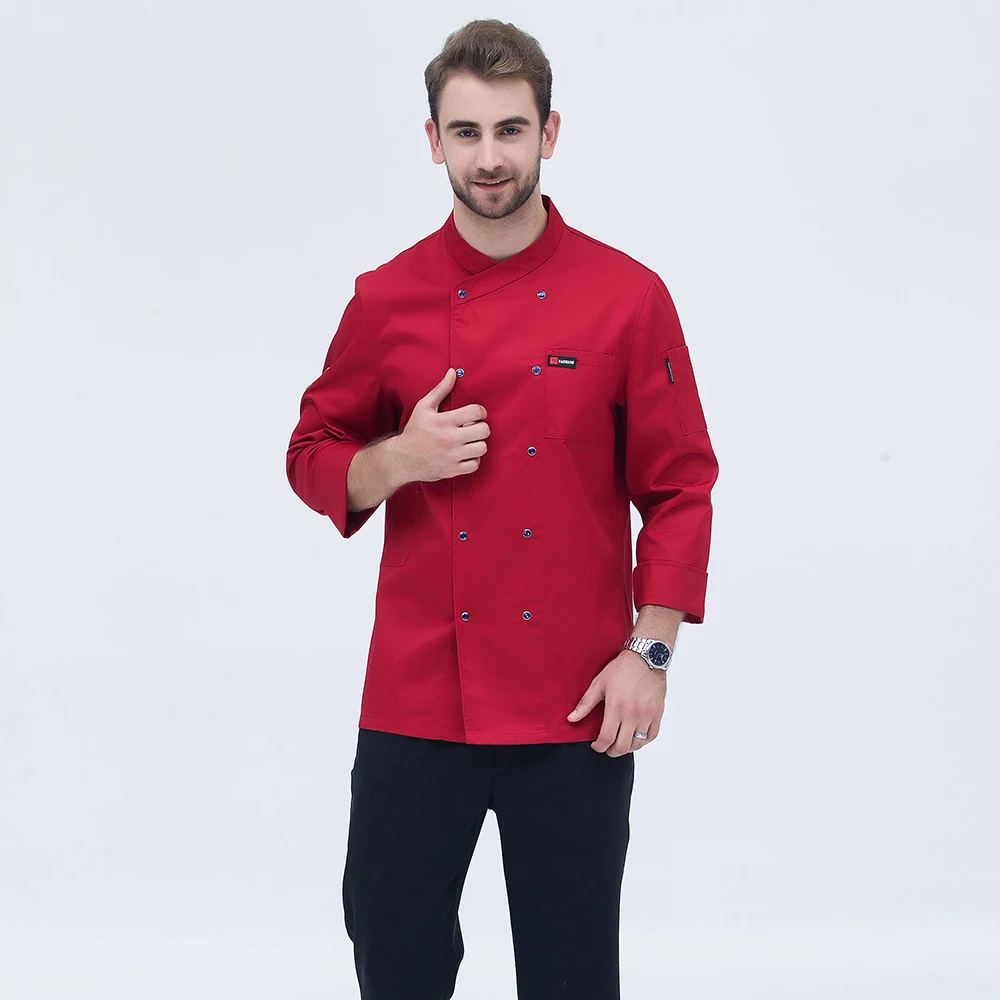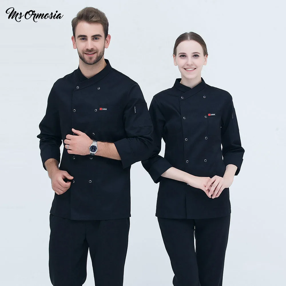 Черная Рабочая Униформа мастер-Повар с длинным рукавом для ресторанов, отелей, барбекю, кухни, Высококачественная рабочая одежда, топы для шеф-повара, обслуживания еды