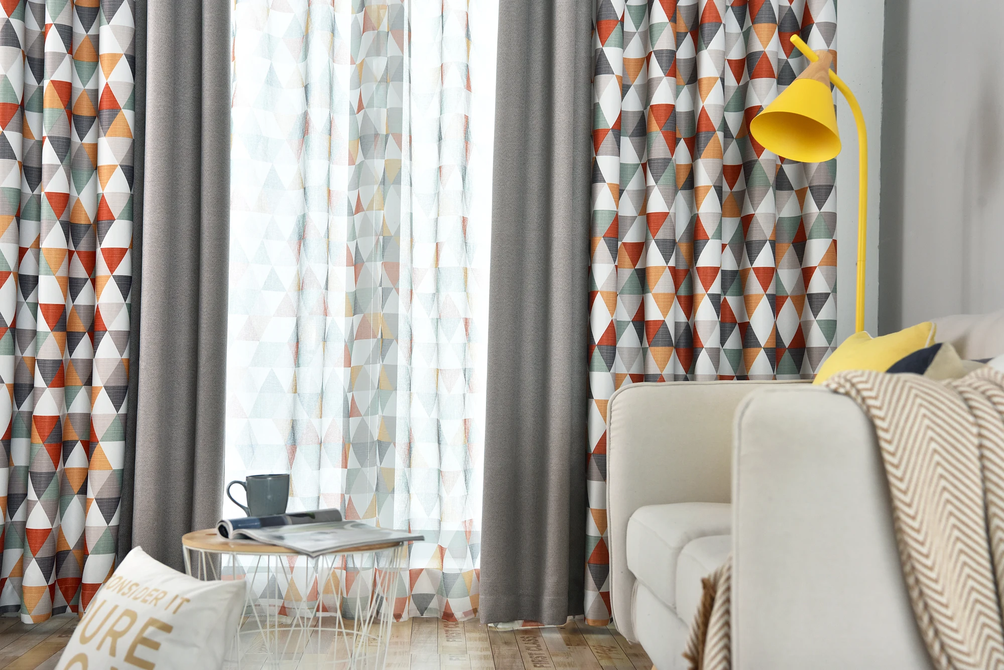 Затемняющие шторы в клетку, геометрический дизайн, для гостиной, кухни, Прошитые Серые толстые шторы, занавески, на заказ