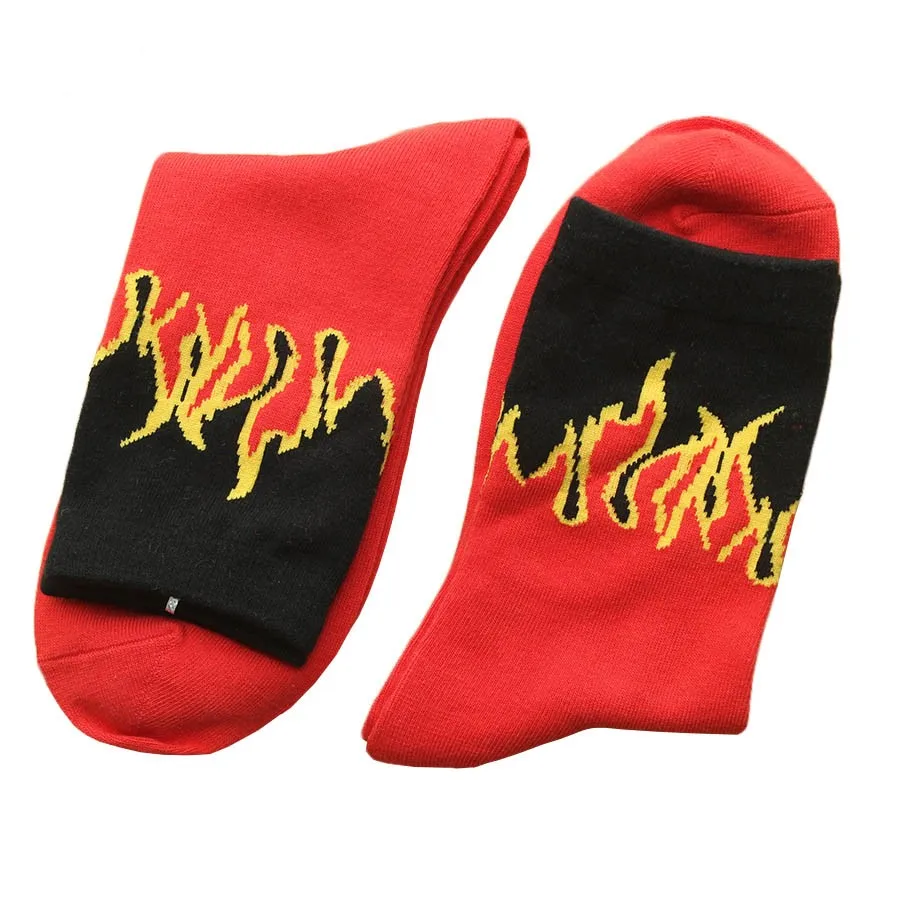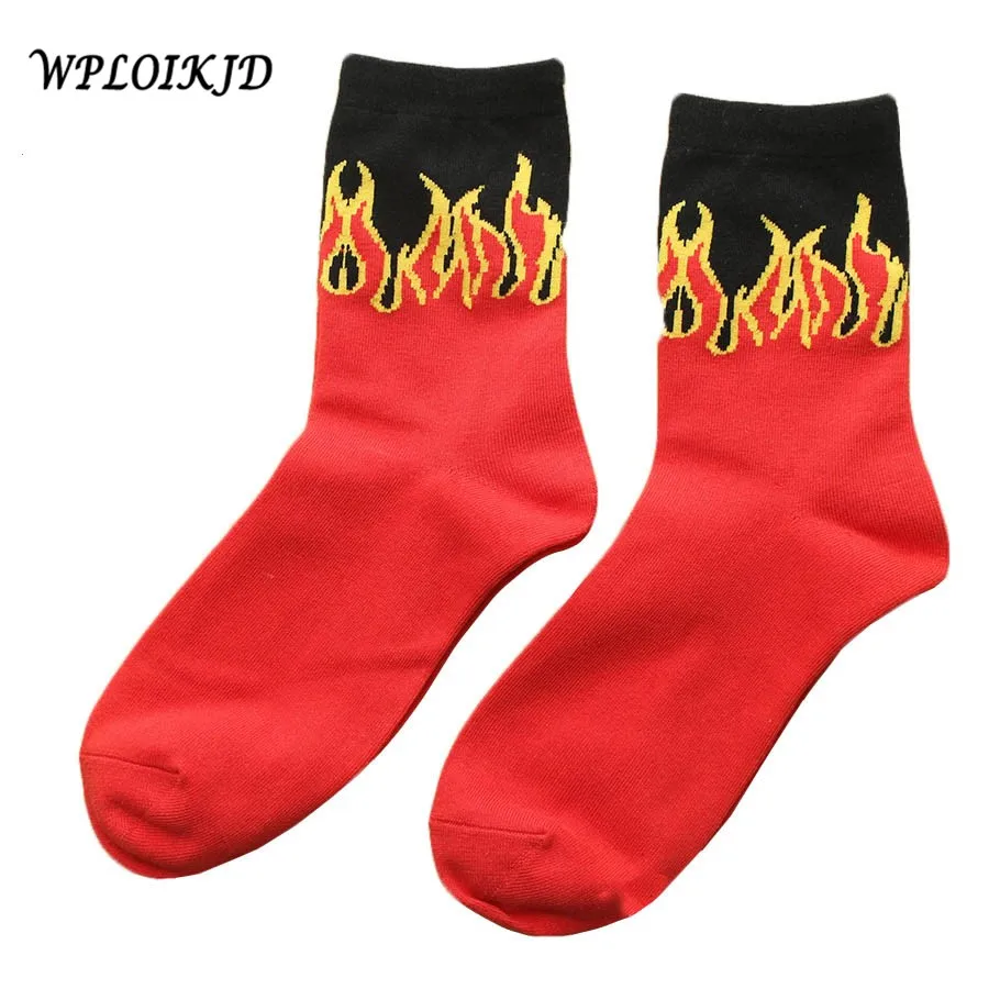 WPLOIKJD Модные дизайнерские носки унисекс в стиле хип-хоп с рисунком красного пламени, живые жаккардовые огненные классические уличные длинные носки для скейтборда