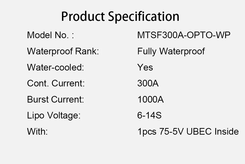 Продукт3. MTSF300A-WP полностью водонепроницаемый 300A ESC с внутренним UBEC