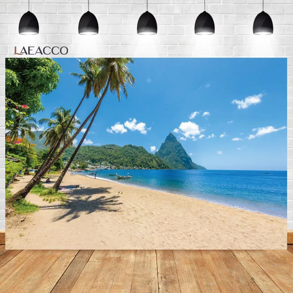 Laeacco зеленый весенний морской кокосовое дерево Декор для дома с ...