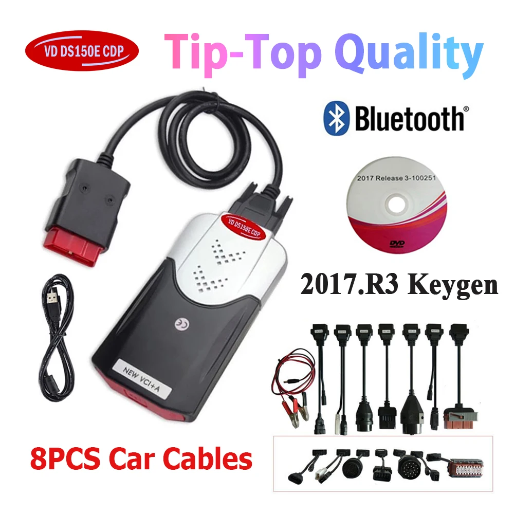 Новейший 2017.R3 с генератором ключей на компакт-диске для дельфина vd ds150e cdp bluetooth автомобили Грузовики OBD2 диагностические инструменты + полный набор автомобильных кабелей 8 шт.