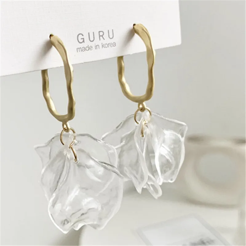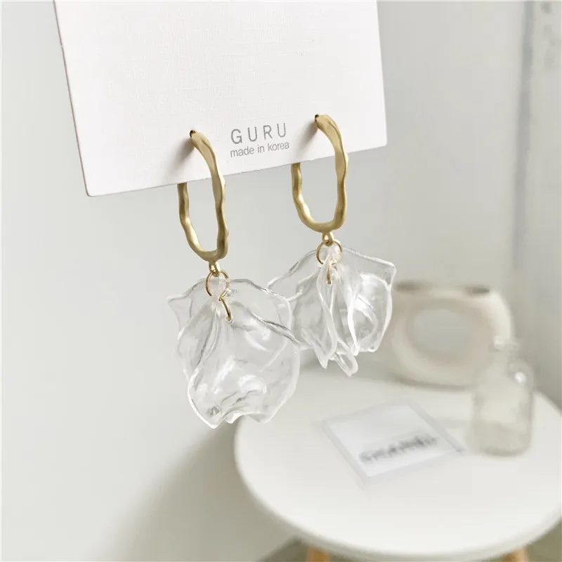 YANGLIUJIA корейская мода темпераментные прозрачные лепестки серьги женские элегантные серьги Джокер ретро ювелирные изделия, подарок аксессуары