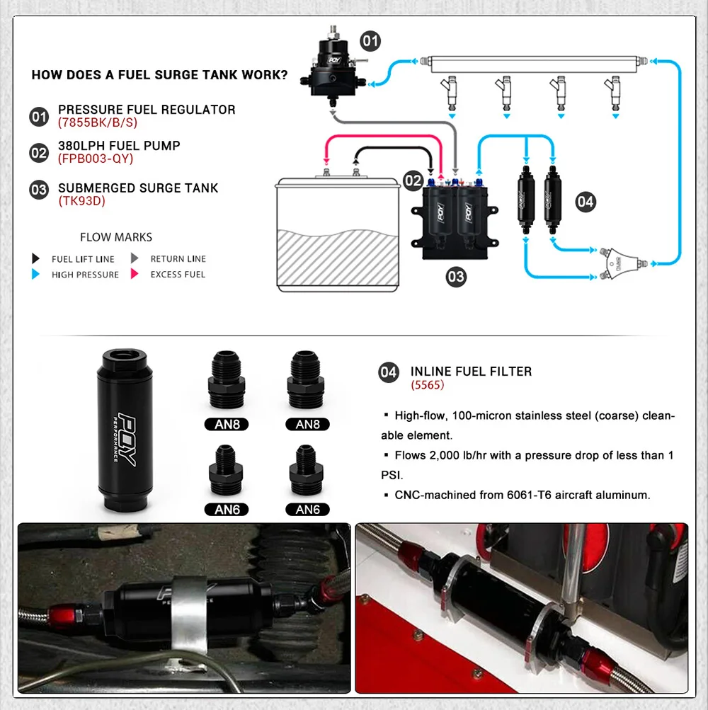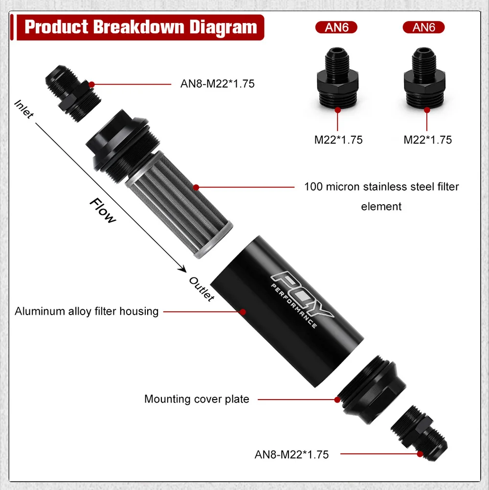 ID = 44 мм PQY новый топливный фильтр с 2шт AN6 и 2шт AN8 адаптер фитинги с 100 микрон стальной элемент PQY5565
