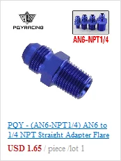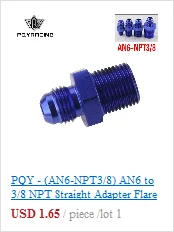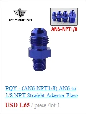 Цвет: синийРазмер прямого фитинга: AN6-NPT1/8Материал: высокое качество 6061 T-6 алюминийВ комплект входит: