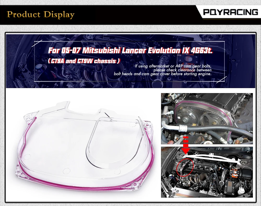 Для 05-07 Mitsubishi Lancer Evolution 9 IX 4G63t.(шасси CT9A и CT9W)При использовании aftermarket или ARP cam gear болтов, пожалуйста, проверьте зазор между головками болтов и крышки кулачкового редуктора перед запуском двигателя. Пожалуйста, будьте внимательны при очистке чистой камеры и используйте только воду и Мягкое мыло без amonia.Особенности и преимущества: