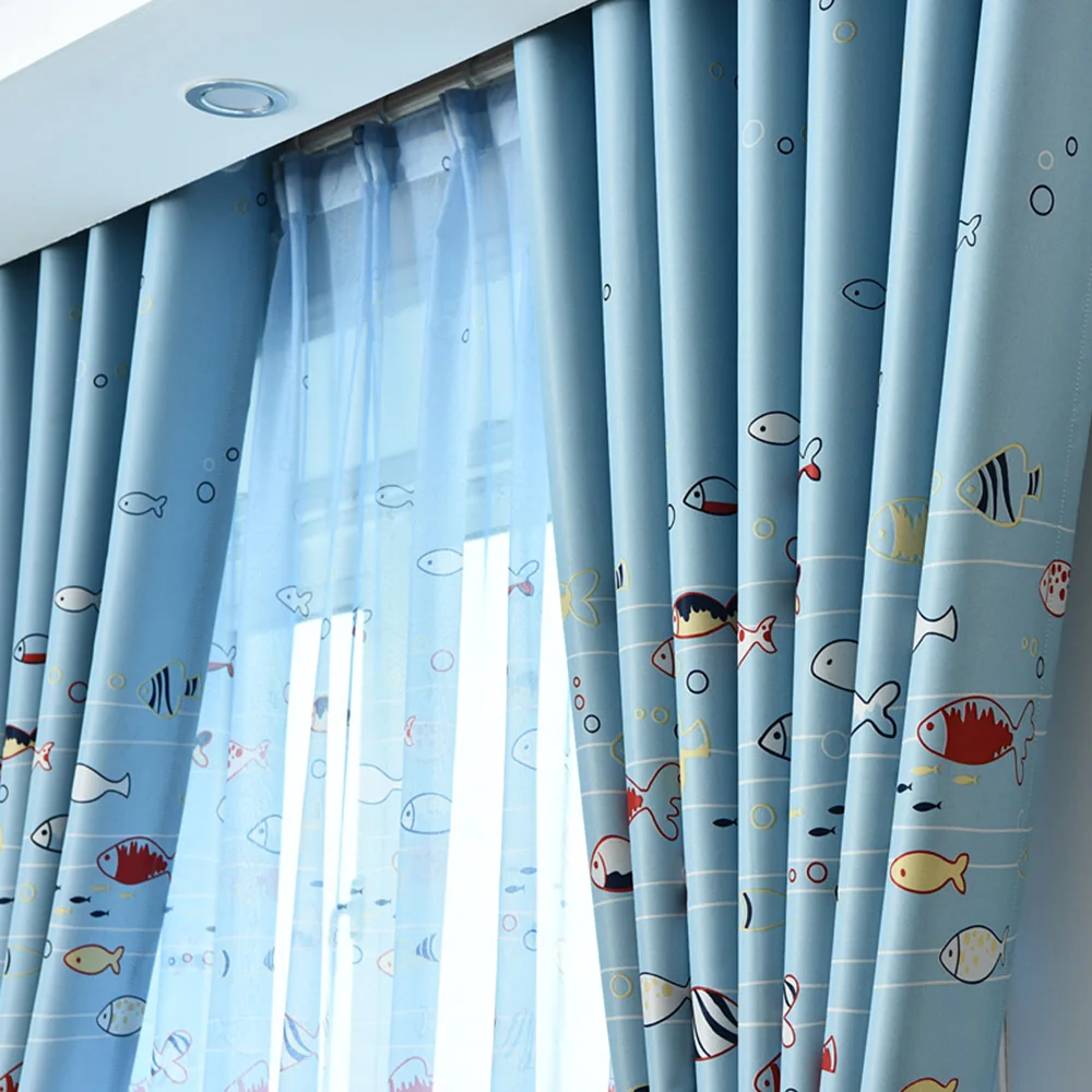 Плотные Роскошные детские шторы с принтом парусника, рыбы для гости...