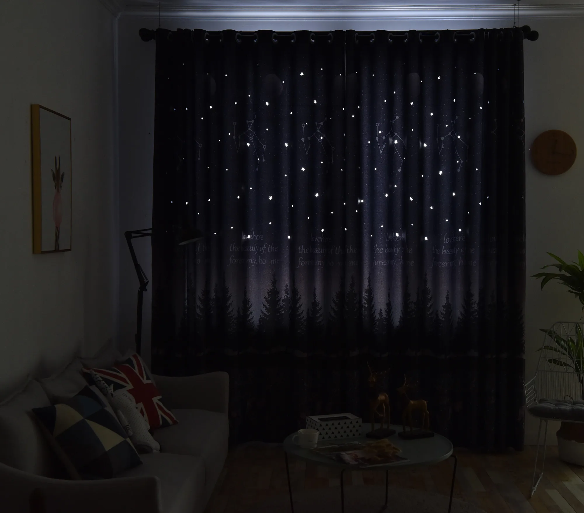 Двойные полые Звездные затемняющие шторы для гостиной девочки ребен...