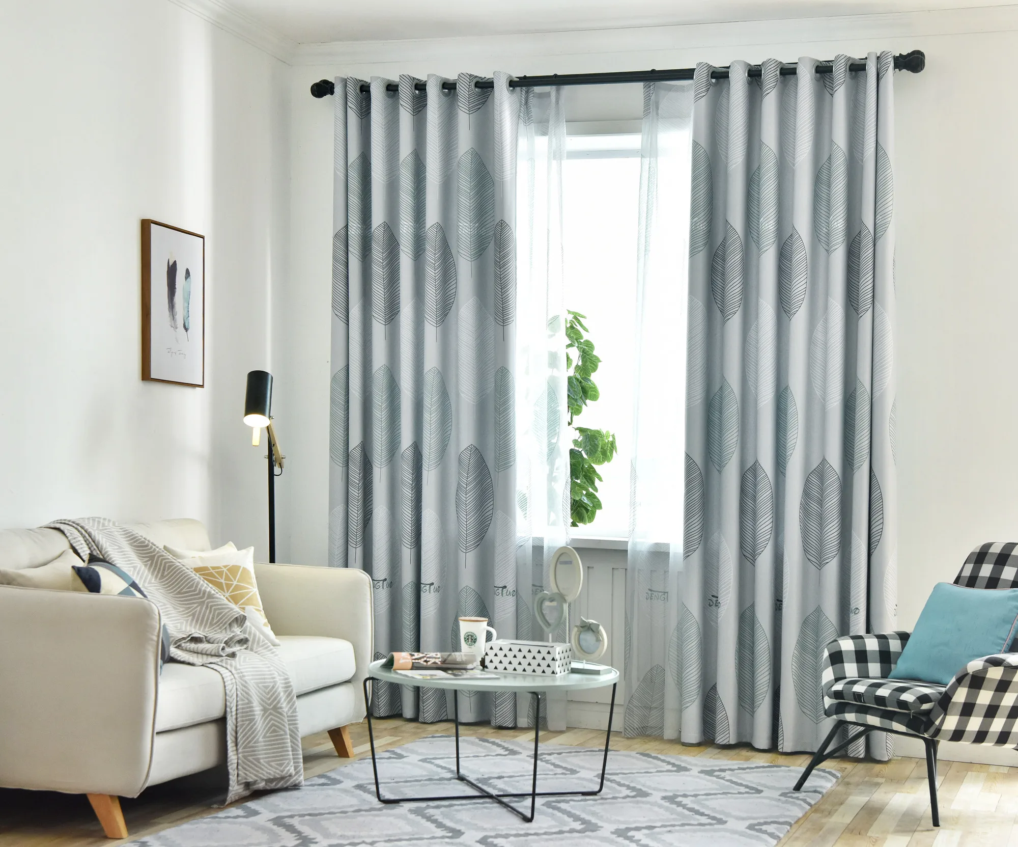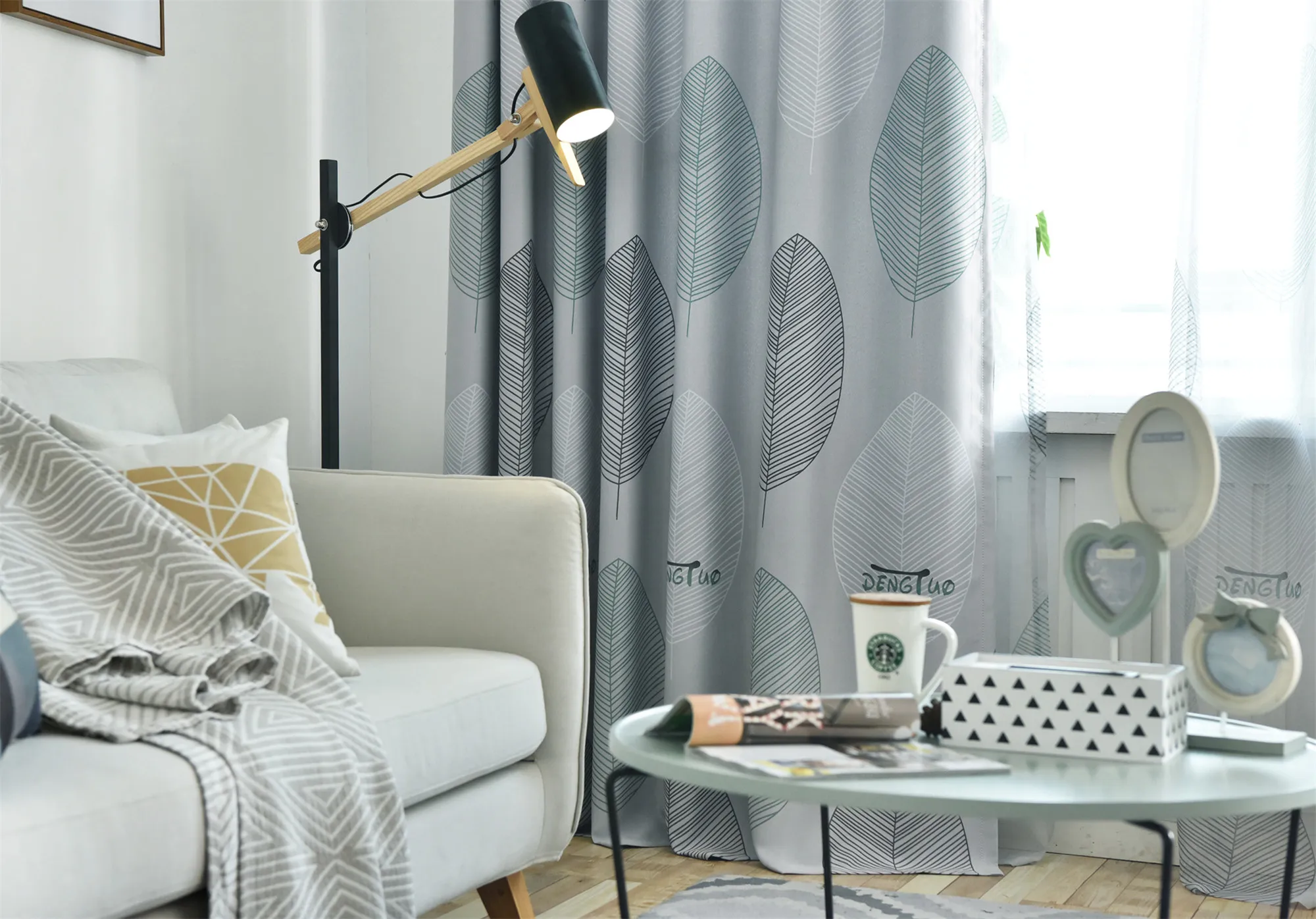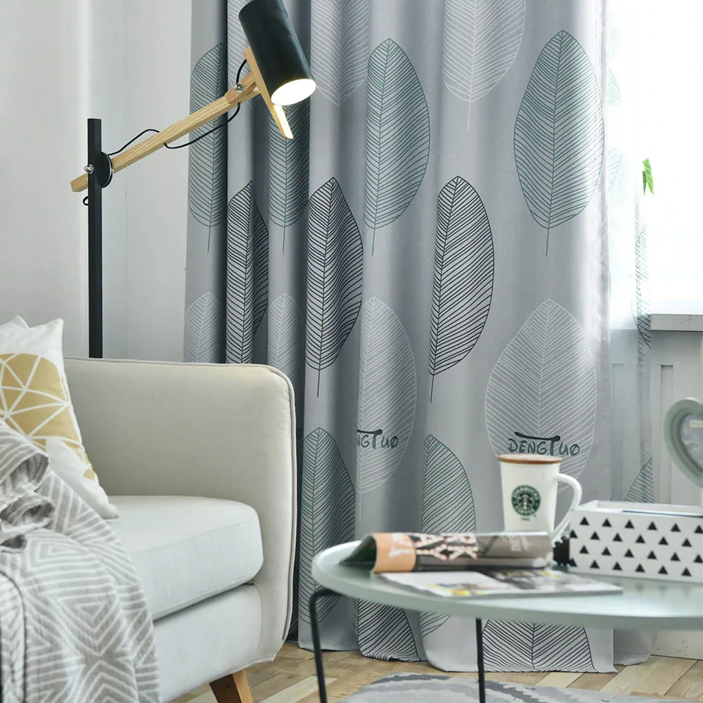 Плотные Шторы с высоким затенением для гостиной, кухни, серые листь...