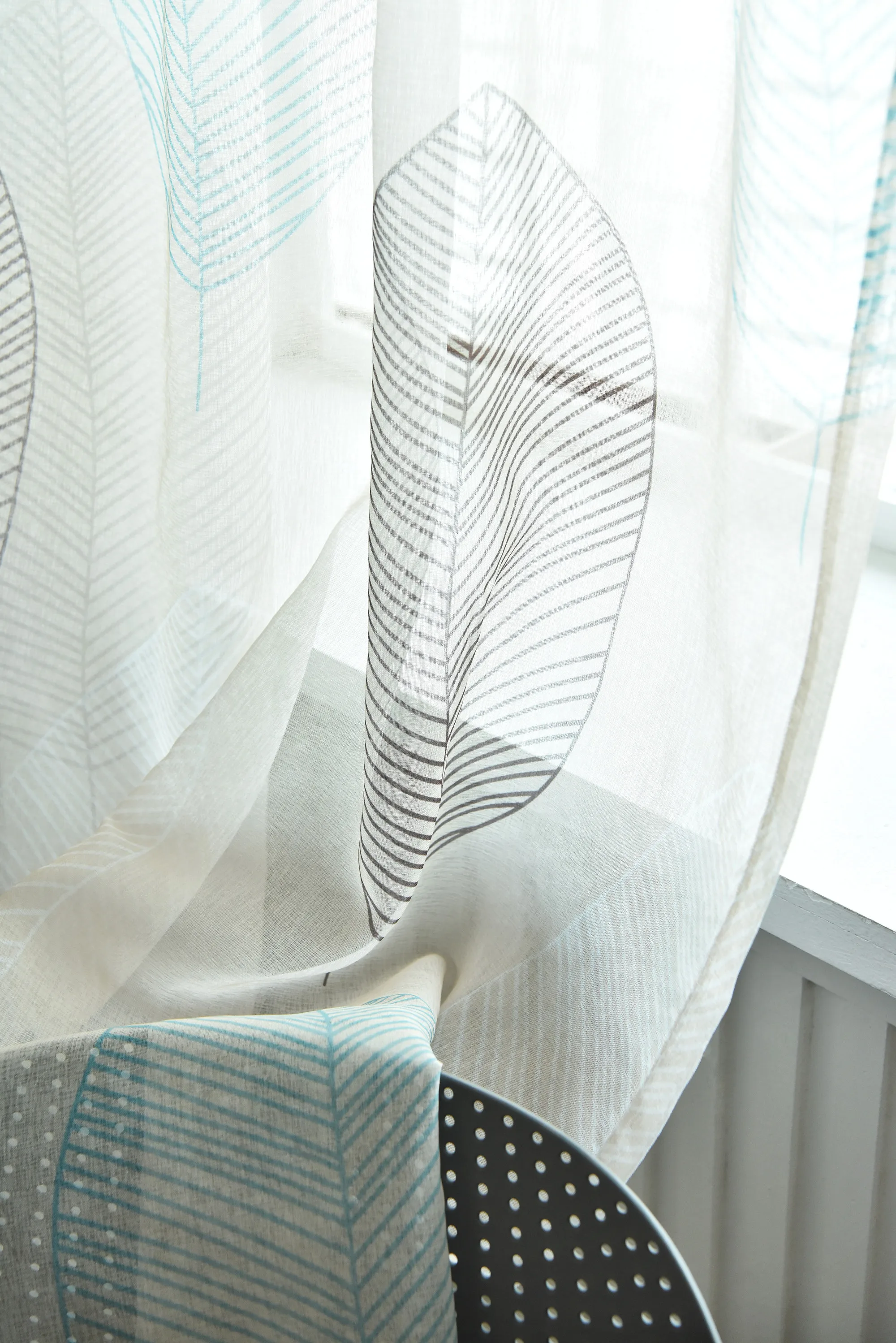 Занавески с принтом листьев для спальни, кухни, тюлевые занавески, ...