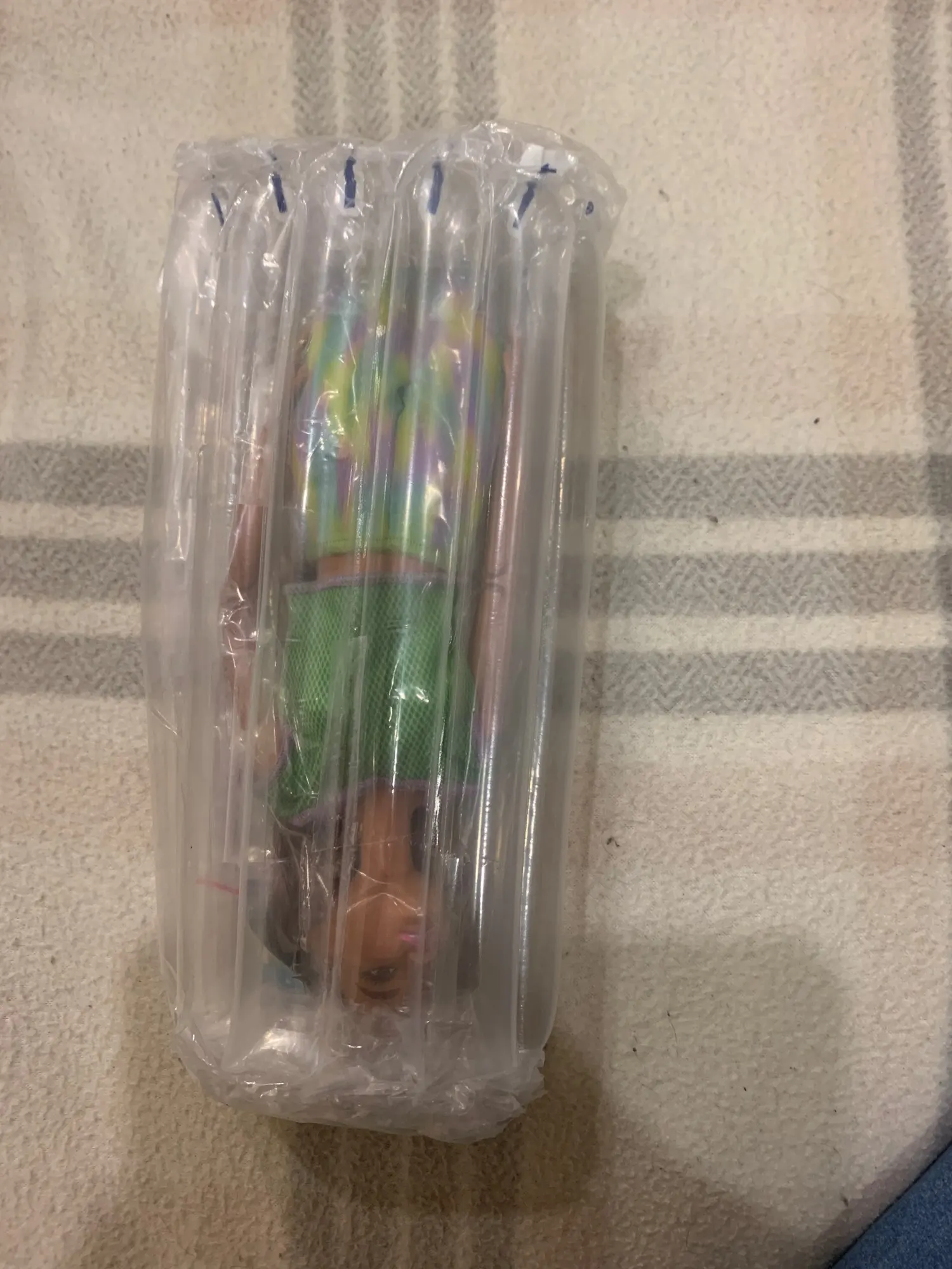 Заказывала куклу без коробки в качестве донора. Приехала очень быстро - за 2 недели. В подарок продавец положил наклейки и обувь. Конечно, печать лица, к сожалению, кривая. Или сам молд - кривой? Непонятно. Но мне это неважно. Мне просто нужно новое тело для ретро-барби