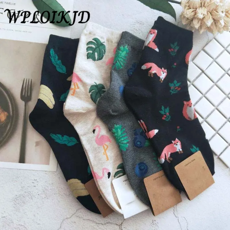 WPLOIKJD художественные Носки с рисунком растений милые Жаккардовые Женские носки в Корейском стиле с животнымиискусственными рисунками