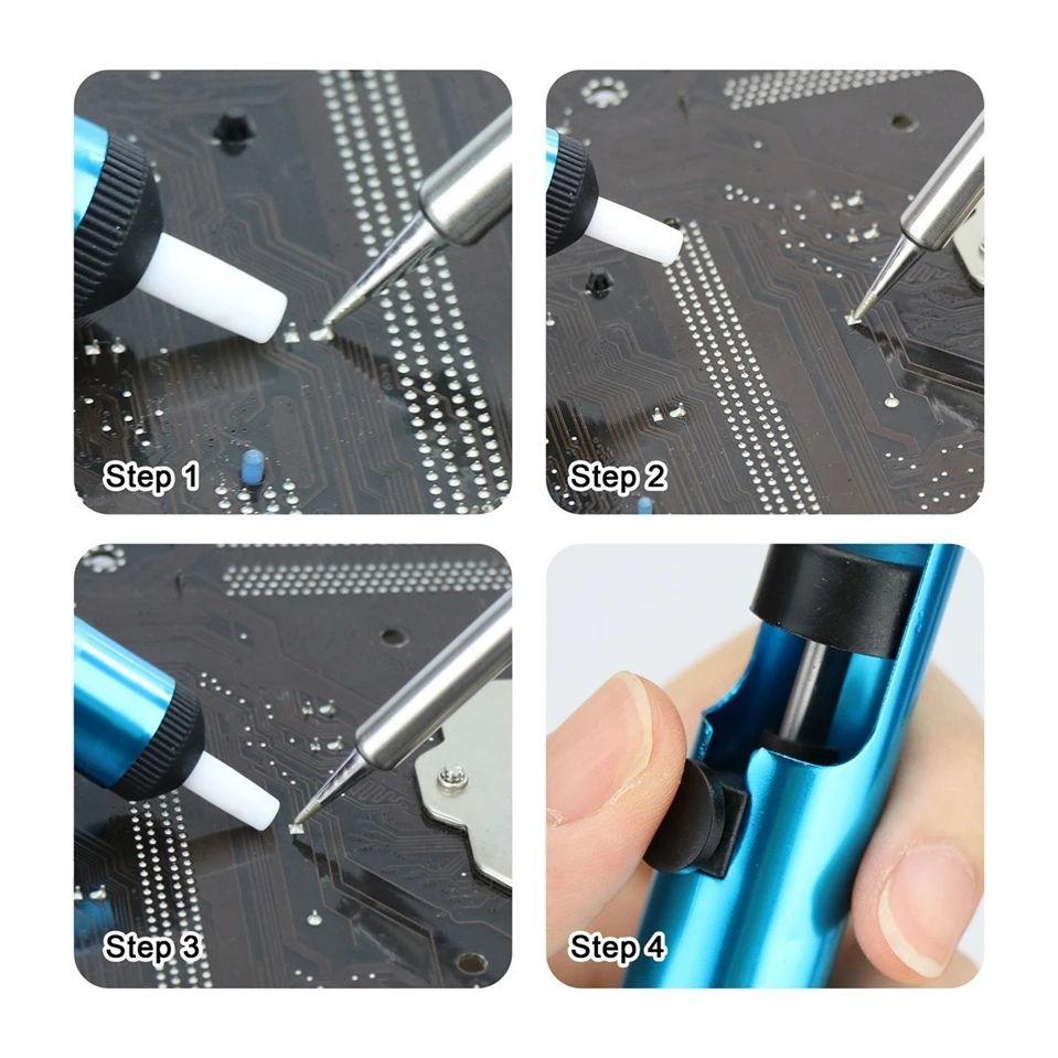 Пружинный Плунжер большой емкости быстро удаляет припой одним действием. Инструмент легко разбирается для быстрой очистки, замены наконечника и кольца "O". Внутренний плунжерный штифт автоматически очищает припой от наконечника при каждом использовании.