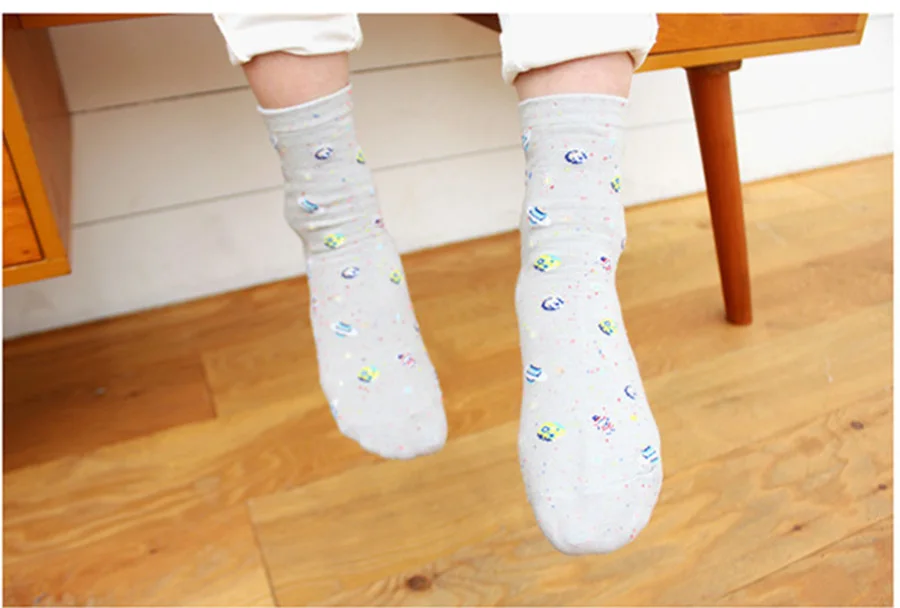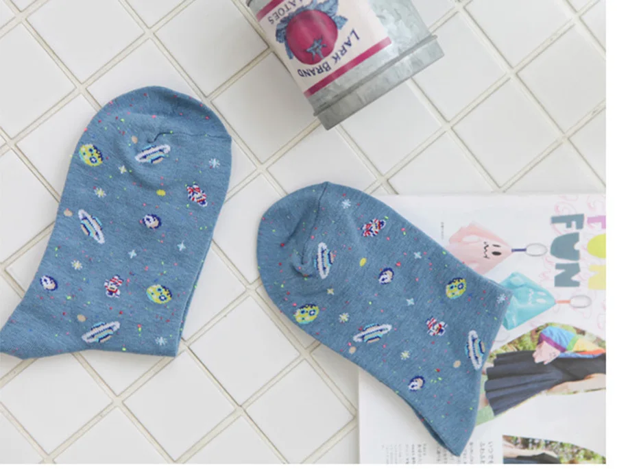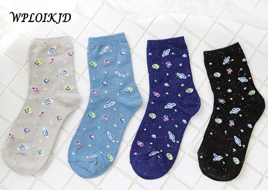 Новые зимние Хлопковые женские носки WPLOIKJD в Корейском стиле, летние женские носки в виде астронавта, планеты, Вселенной, Новые короткие модные носки S