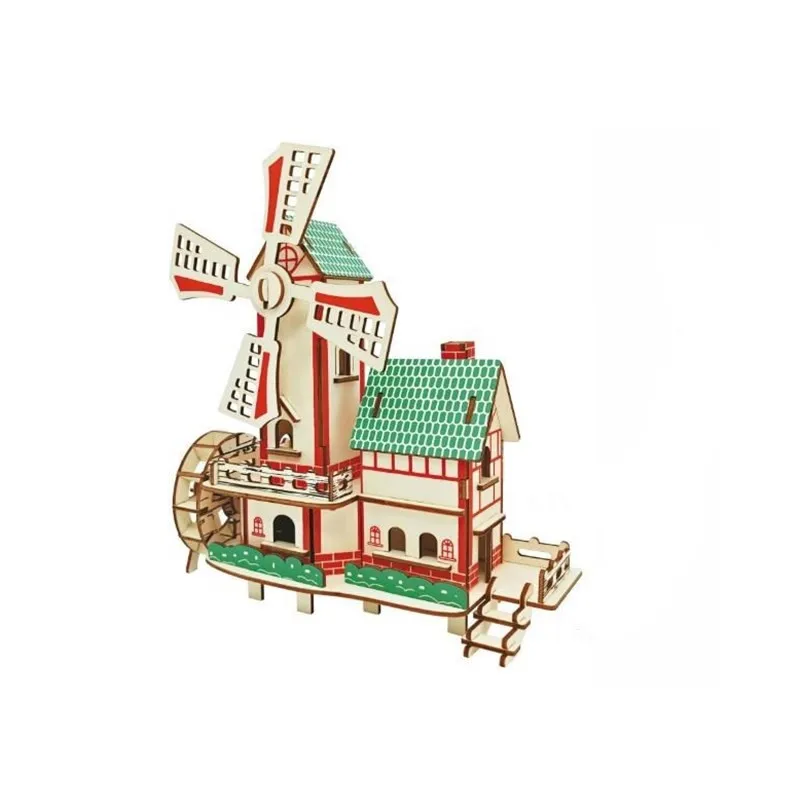 Моделирование водяной мельницы, цветочный магазин, модель 3d, трехмерный деревянный пазл, игрушки для Детский Набор для творчества ручная работа