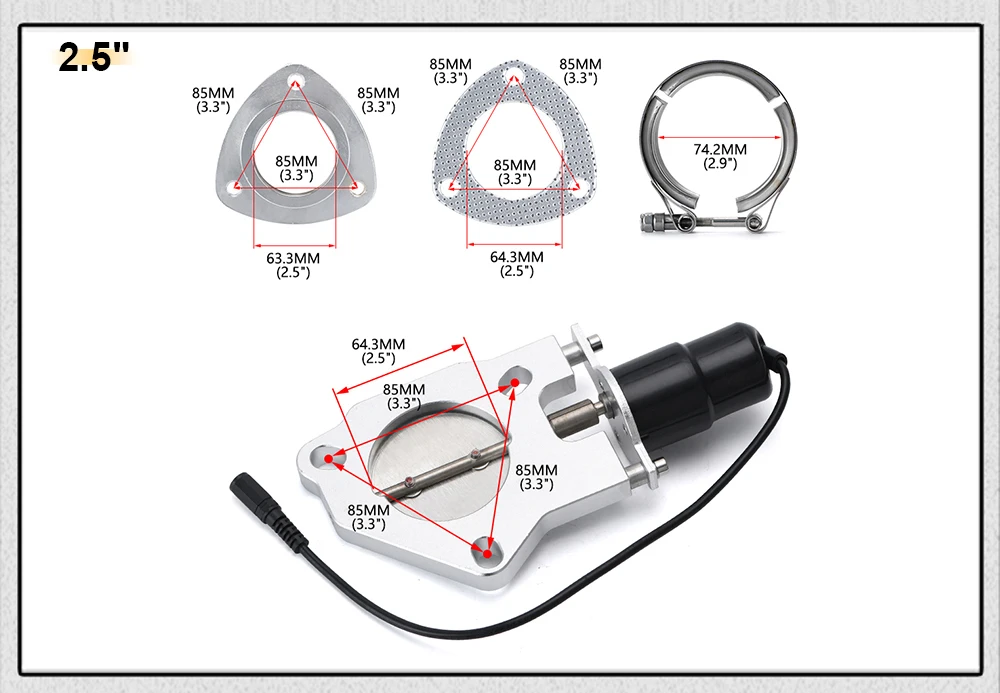 Универсальные приспособления для автомобилей с 2,5 "/3,0" впускными выхлопными трубами. Их можно разместить в любом месте после размещения заголовков. Легко управляется при нажатии кнопки. Электроконтролируемые выпускные клапаны. Можно открыть и закрыть изнутри автомобиля с откидной крышкой выключателя. Управляйте громкостью и управляйте потоком. Трубы изготовлены из высококачественной и легкой нержавеющей стали. Электрический вырез изготовлен из высококачественного Qliaty и легкого веса CNC обработанного 6061 авиационного алюминия. Погодостойкие жгуты проводов Электродвигатель с высоким крутящим моментом, специально изготовленный для выдерживанияВысокая температура и высокая Вибрация окружающей среды