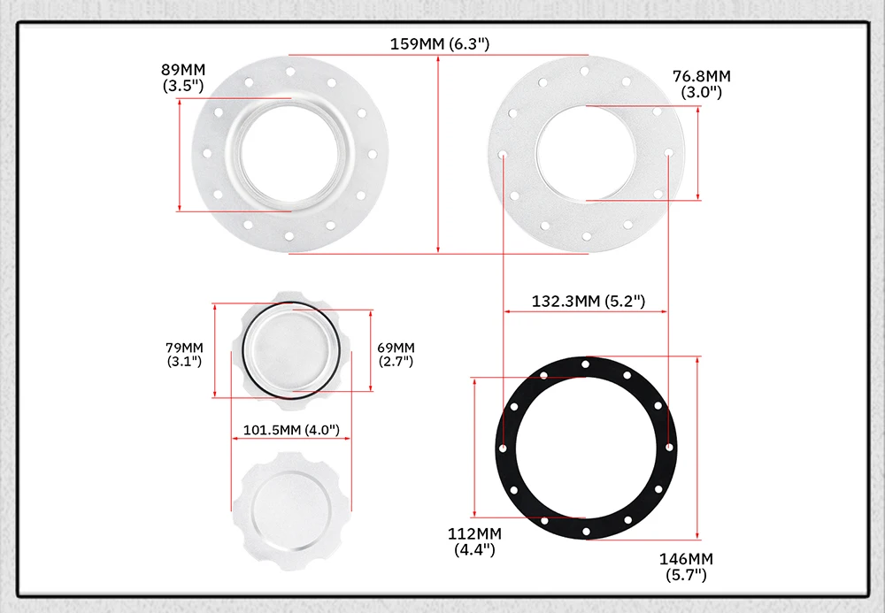 PQY-Заготовка алюминиевый топливный элементкрышка резервуара для перенапряжения с 12 болтовыми отверстиями с 3 ''I.D. Отверстие для топливных элементов RI PQY-SLFCC-01SL