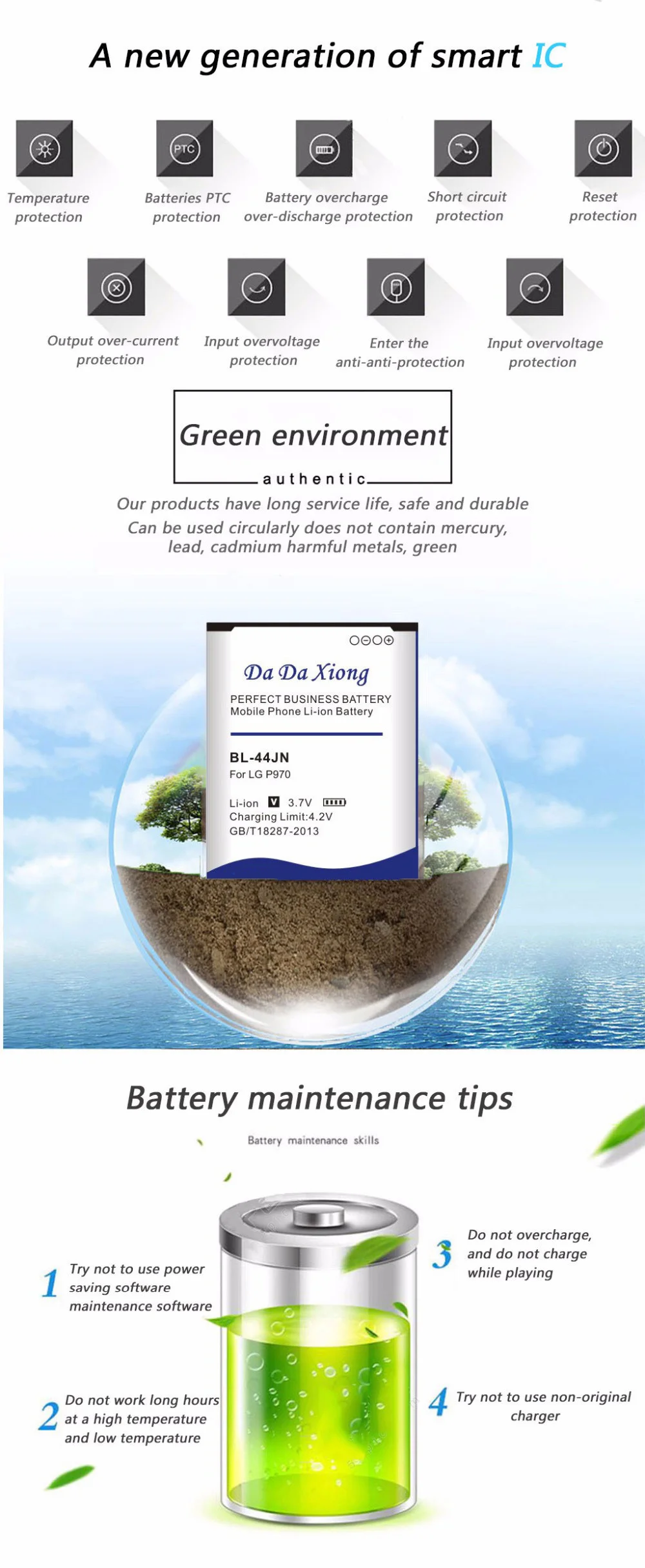 DaDaXiong 4600mAh BL-44JN BL44JN BL 44JN для LG P970 P690 P693 E730 E510 C660 P698 MS840 L5 E400 E610 аккумулятор для телефона