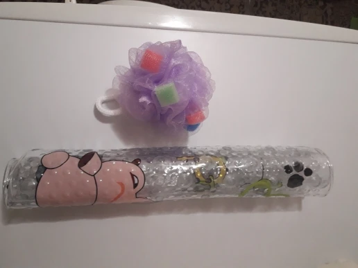 Ну только китайский производитель мог додуматься сделать коврик в душ без дырочек. Этот коврик перекрывает слив воды и набирается полная душевая. Коврик плотный, качество отличное, симпатичная мочалка в подарок. Но 5 звёзд не могу поставить коврику, которым я не могу пользоваться.