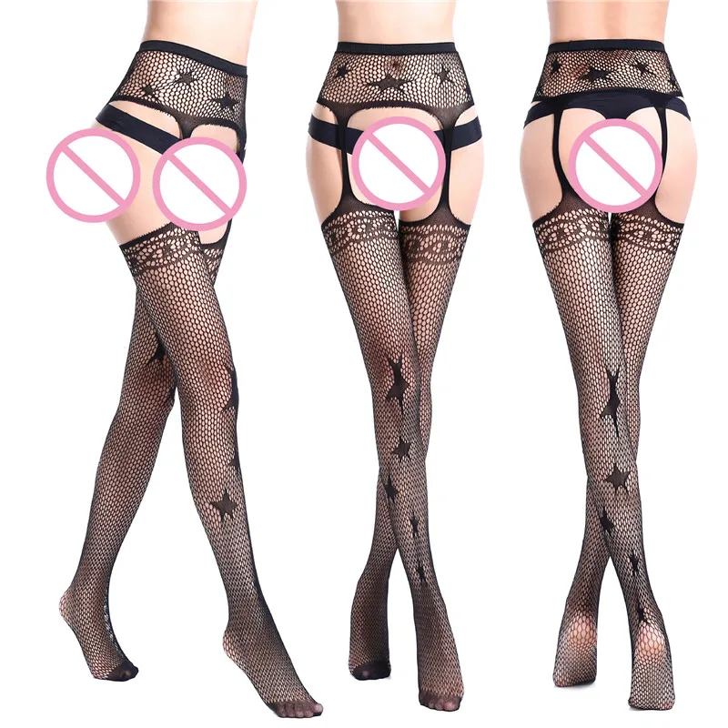 Чулки женские эротические с открытой промежностью, пояс большого размера, колготки для женщин, интимные фантазийные колготки, с вырезами сетчатый