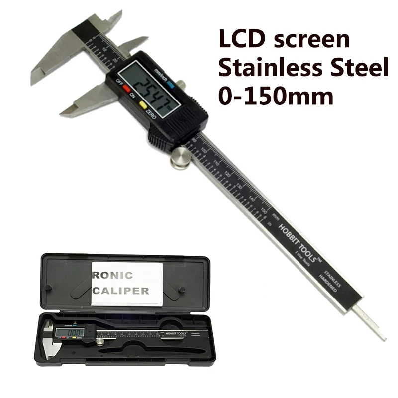 Цифровой штангенциркуль из нержавеющей стали, 6 дюймов150 мм, большой ЖК-экран, плавное скольжение, цифровой электронный Пластиковый штангенциркуль, микрометр