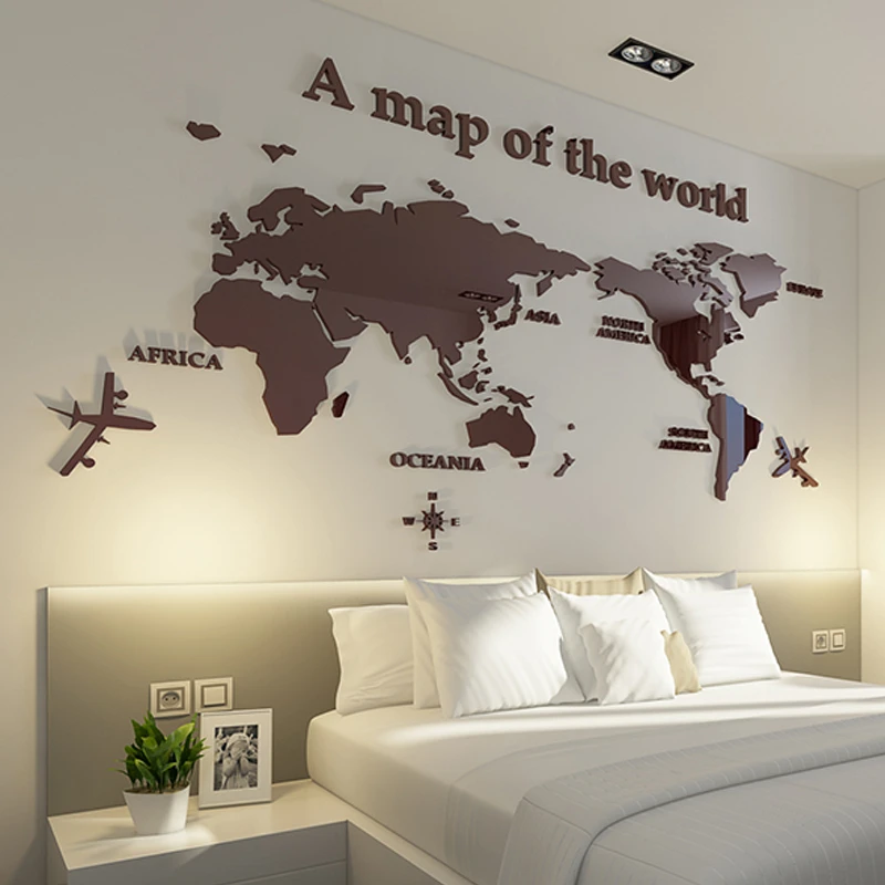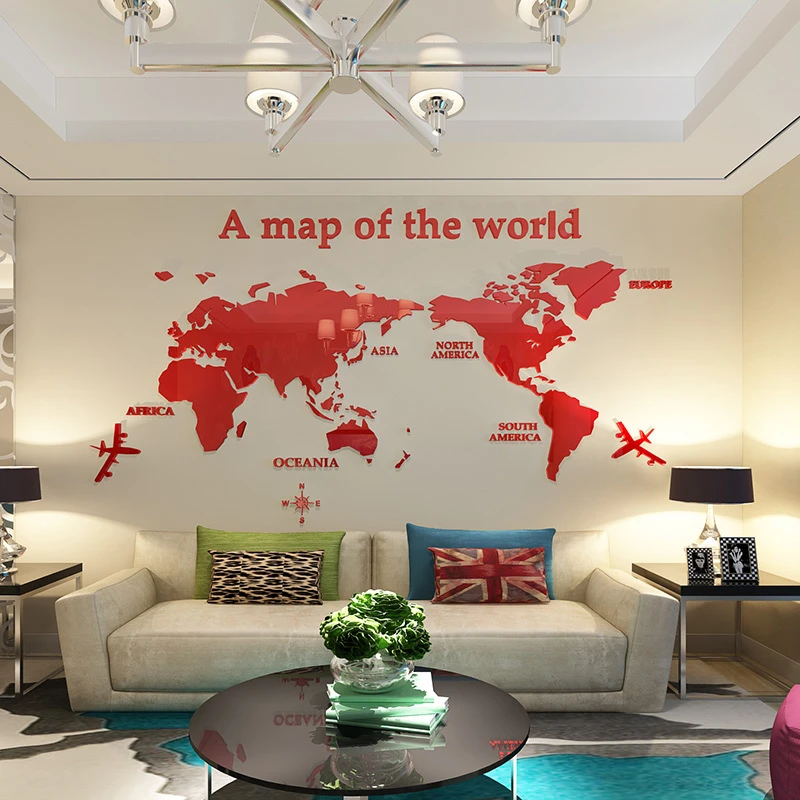 Карта мира, трехмерная Хрустальная акриловая фотография, гостиной, ТВ, дивана, Современный домашний декор, искусство, 3D наклейки на стену