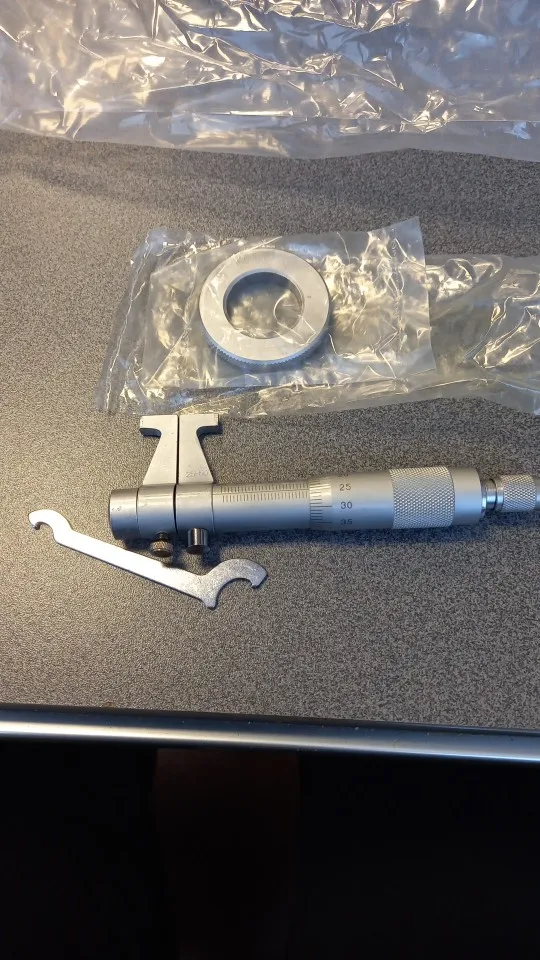 Я прибываю в полиэтиленовом пакете, без дела. Я не думаю, что это лучший способ отправить или сохранить микрометр.
