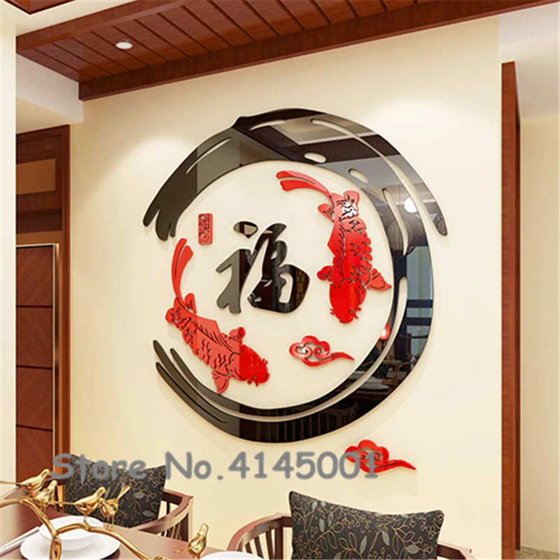 Новые акриловые 3D наклейки на стену Lucky Fish в китайском стиле, Настенный декор для гостиной, дивана, входа, ресторана, творческие 3D стикеры фу сделай сам