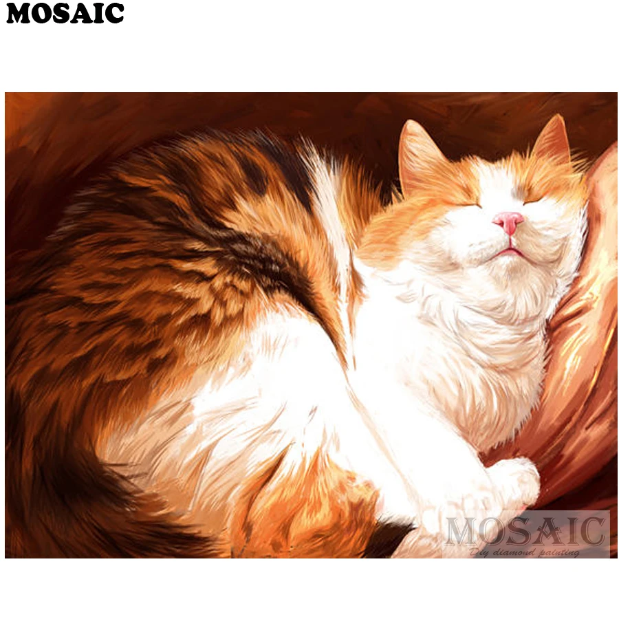 Алмазная 5D картина сделай сам с квадратными стразами, вышивка крестиком в виде милого спящего кота, мозаика 3D Стразы, домашний декор