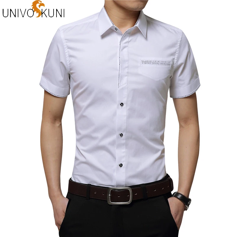 Мужская приталенная рубашка из 100% хлопка, Повседневная однотонная деловая рубашка с короткими рукавами и отложным воротником, Q555, для лета