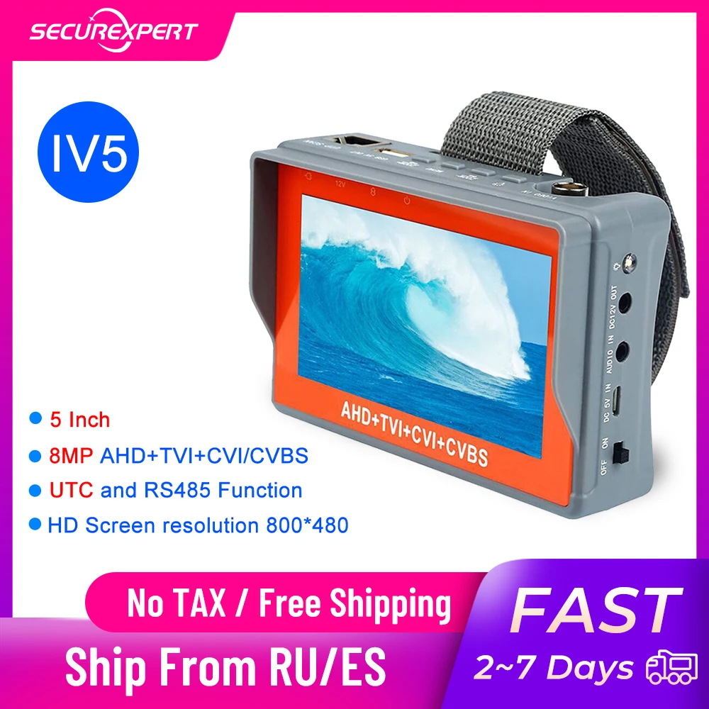 TI-ACT9637-IV5 = 8 Мп + 5 дюймов + HD разрешение экрана 800*480 + 8 Мп AHD + TVI + CVI/CVBS видео тестер + UTC (HD коаксиальное управление, BNC коаксиальное Управление PTZ, но нельзя звонить в меню камеры) + RS485 + UTP