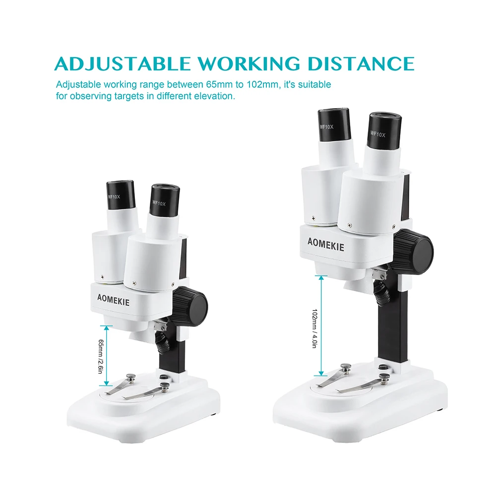 1. Этот стереомикроскоп имеет четкое стереоизображение над боковым полем обзора. Широко используется на электрофабриках, лабораториях, школах, припоях печатных плат, ремонте мобильных устройств и т. д. 2. Вертикальная бинокулярная головка, расстояние между зрачком составляет 55-75 мм. 3. Большое рабочее расстояние составляет около 7-11,5 см 4. Встроенная верхсветильник подсветка 5. Полностью экологически чистый пластиковый корпус и удобство переноски 6. Линза из оптического стекла 7. Картонная и пенопластовая Внутренняя упаковка. Предотвращает повреждения при транспортировке. 8 посылка: 1 стереомикроскоп с 1 парой окуляров WF10X и 1 парой окуляров WF20X Окуляры: WF10X/WF20X Объектив: 2X С окулярами WF10X: общее увеличение 20X = (окуляры 10X) x (объектив 2X) С окулярами WF20X: общее увеличение 40X = (окуляры 20X) x (объектив 2X) Верхсветильник светодиодный светодиодная подсветка Межзрачковое расстояние: 55-75 мм Вес нетто: около 500 г Батарейки: 2 батарейки АА (не входят в комплект)