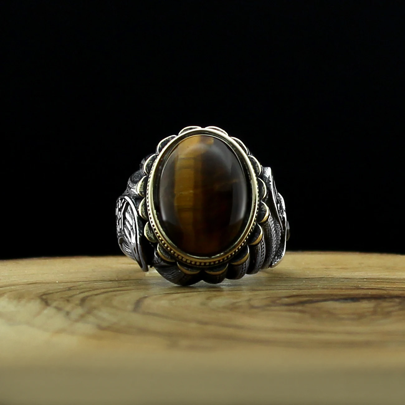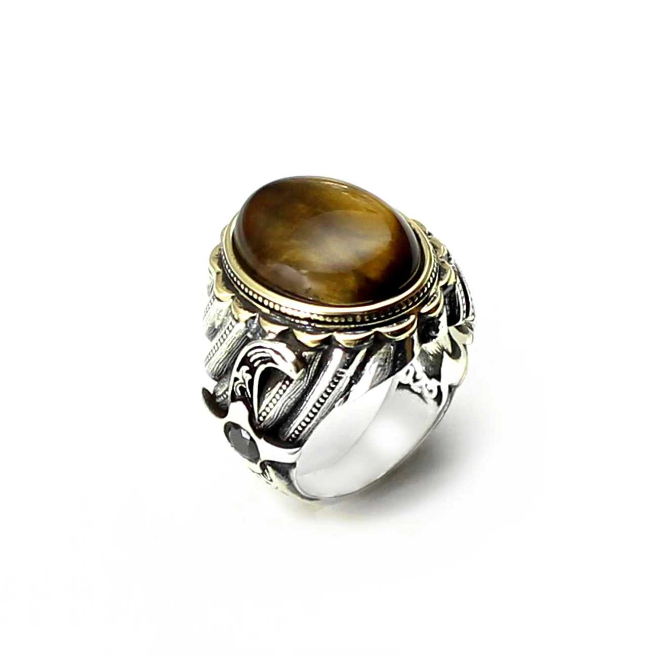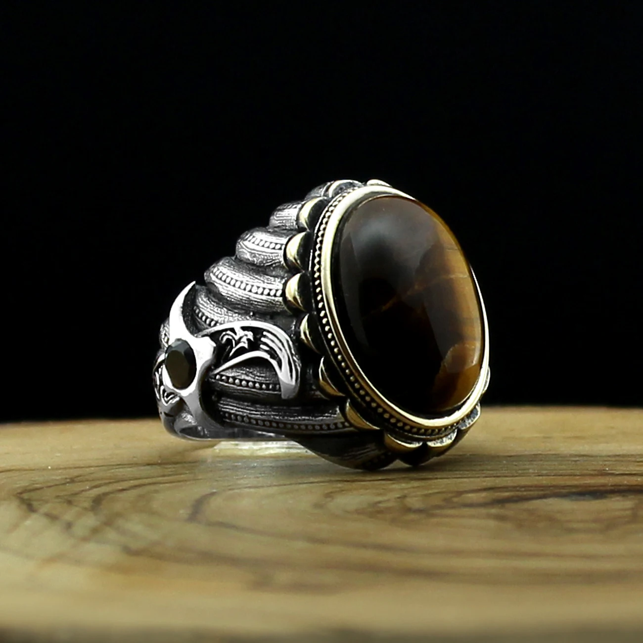 Турецкий Стиль Чистый Настоящий Стерлингового Серебра 925 Натуральный Камень Кольцо Для Мужчин Женщин Высококачественные Ювелирные Изделия Панк Ретро Мода Старинные Подарок Ручной Работы Циркон Оникс Агат Аксессуар