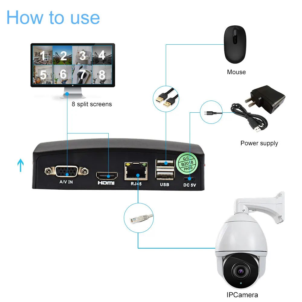 Новейший 8CH MINI NVR CCTV NVR сетевой H.265 5MP видеорегистратор для камеры видеонаблюдения IP-камеры Облако P2P eSATA TF USB пульт дистанционного управления