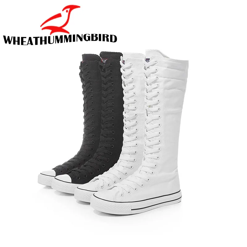 Большие размеры 35-43 и выше, модная Женская полотняная обувь с высоким берцем, на высоком каблуке, обувь выше колена, женская обувь на плоской подошве; Повседневная обувь с высоким голенищем в панк стиле на MA-68