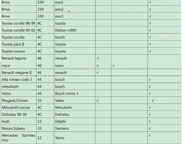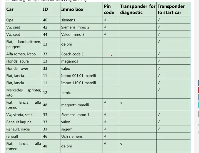 2. Клонирование транспондера:11, 12, 13, 33, 73, 4C (написание на 4C электронный ключ и батарея меньше TPX1 транспондера), Philips Crypto 40 (некоторые), 41 (все), 42 (все), 44 (все разблокированы VAG), 45 (все)До сих пор обычные инструменты клонирования транспондера могут Копировать только фиксированные транспондеры. Но революция, которую мы начали с нашего устройства, Zed-Qx, растет с Zed-BULL. 41(NISSAN), 42(VAG), 44(Unlocked VAG) и 45(PEUGEOT) транспондеры, которые, как правило, не могут быть скопированы, могут быть скопированы с Zed-BULL.3. Производство транспондеров для программирования OBDЕсли у вас есть устройство OBD, такое как T-Code Pro, вам нужны специальные прекодированные транспондеры для некоторых автомобилей. Вместо того, чтобы покупать эти специальные транспондеры по высоким ценам, вы можете производить их с Zed-BULL с помощью пустых транспондеров. И вам не нужны дорогие прекодированные транспондеры по цене около 8-10 евро... Транспондеры, которые вы можете произвести: 40, 41, 42, 44 Mitsubishi, 44 VAG, 45, 73 Mitsubishi, 61, 62, 65 и 46 для BMW, AUDI, PORSCHE, CHRYSLER, RENAULT... и т. Д. На данный момент Zed-BULL имеет 24 различных приемопередатчика производственных приложений.