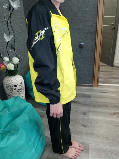 костюм пришел супер быстро. Заказывала сыну 12 лет, рос 155 вес 45 кг, думала L будет большой, но размер оказался в самый раз и по длине и по ширине. Цвет ярко-желтый, как и на фото продавца, есть подкладка, костюм хороший.
