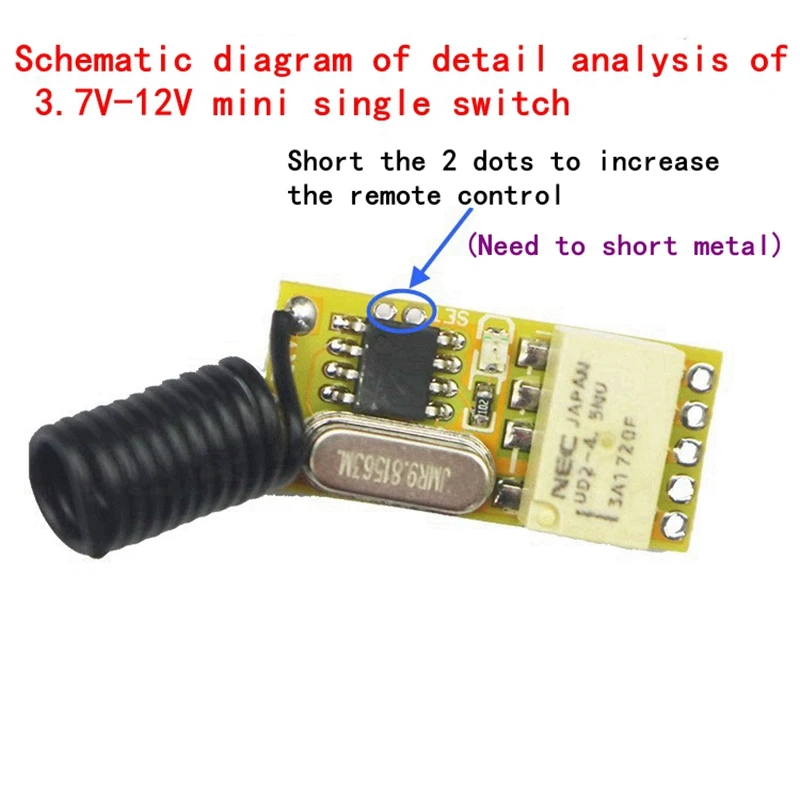 Это плата приемника небольшого размера с одним выходом. В нем используются импортные чипы приемника с кристаллами промышленного класса. Он обладает высокой чувствительностью и хорошей защитой от помех. Он имеет широкий диапазон напряжения 3,7 V-12V и имеет низкую потребеление энергии в режиме. Подходит для батарея источника питания, 3,7 V-12V источника питания, удобно для двумя входами и двумя выходами. Может непосредственно управлять токовой нагрузкой 1A. Может использоваться для привода реле, небольших моторов, небольших моторов, игрушек, светодиодный индикатор и другого электрического оборудования.