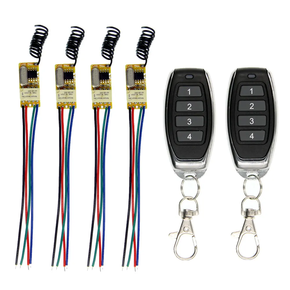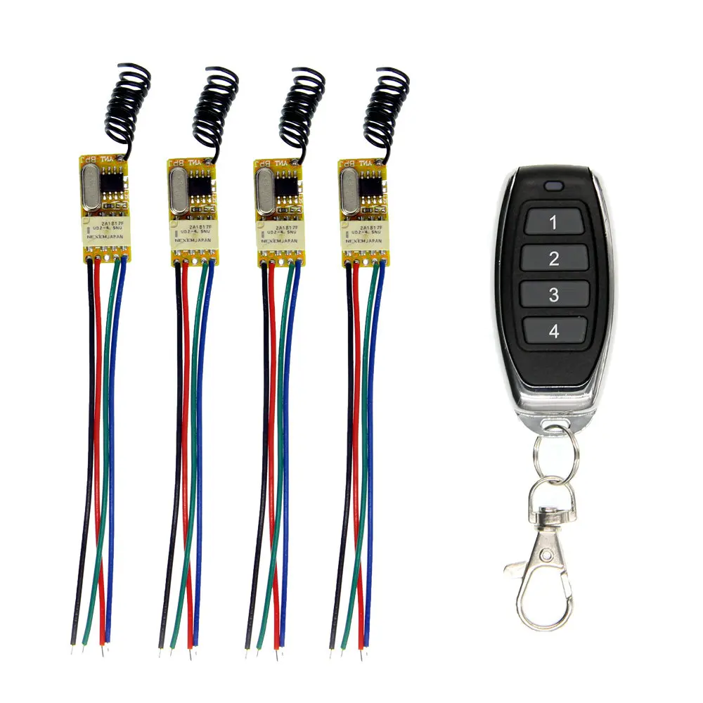 Этот коммутатор разделен на 4 канала. Это 4-кнопочный пульт дистанционного управления, который контролирует 4 группы приемников, 1 клавишную трубку и 1 группу приемников. Рабочий режим можно выбрать только как jog / self-lock.