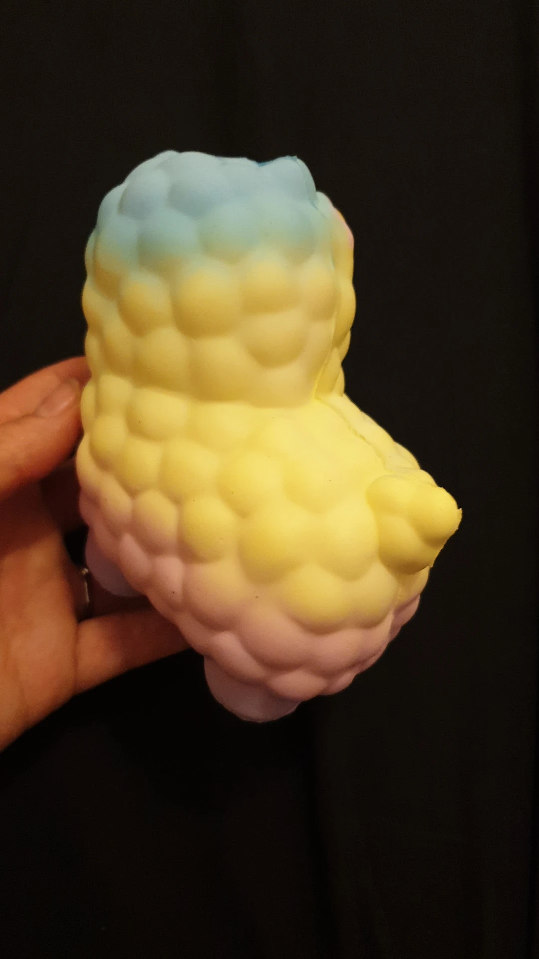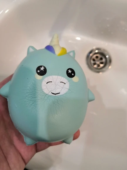 Это очень мило и приятно на ощупь, оно не очень маленькое и не очень большое, сначала у него был очень сильный запах, но через некоторое время он играет с ним, губка пришла с небольшим недостатком, но ничего серьезного, потребовалось почти 3 недели, чтобы добраться до места назначения