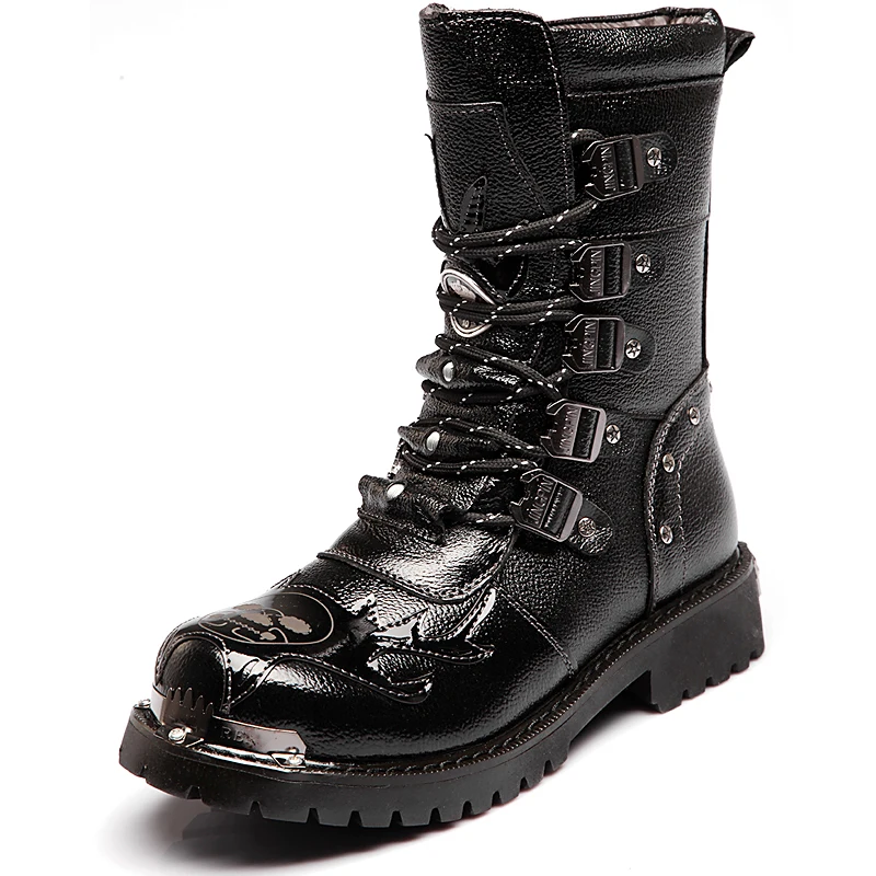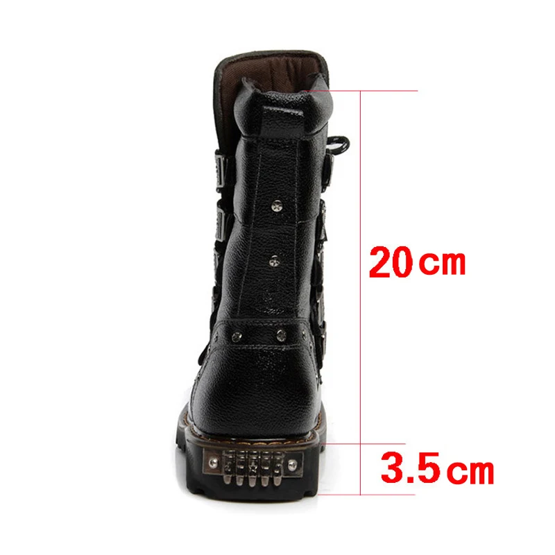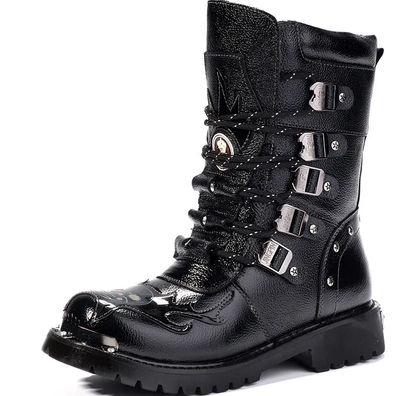 Ботинки в байкерском стиле; Мужская обувь; Армейские ботинки; Мужские ботинки в стиле милитари; Кожаные черные ковбойские ботинки в готическом стиле; Ботинки в стиле панк; Рабочие ботинки; 46