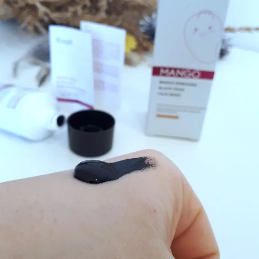 Чёрная маска, с помощью которой можно избавиться от чёрных точек. Чёрная как уголь, она застывает полностью примерно за 15 минут, становится плёнкой. Если наносить маску на распаренное лицо, то эффективность намного выше. В состав компонентов входят полезные компоненты: экстракт манго, гидролизованное касторовое масло. Маску необходимо наносить на проблемные участки кожи и оставить на 15-20 минут до полного застывания. По истечении этого времени маска полностью застывает и образуется плёнка. Плёнку необходимо удалить. На ней остаются ороговевшие частицы кожи, содержимое пор. Мне показалось, что маска немного сушит кожу, поэтому после её использования я наношу увлажняющий крем. Хорошая маска, обязательно попробуйте