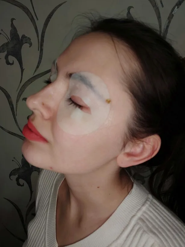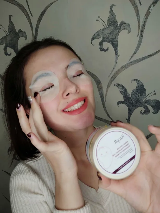 Патчи для ежедневного применения #RtopR Патчи идут тканевые, пропитаны сывороткой густой в банке с семенами (цветами?) золотого османтуса. Пропитаны хорошо. У меня осталось полбанки патчей, но жидкости там много. В комплекте был специальный пинцетик которым достается патч и крепится на вокруг глаза. Патч липнет не очень хорошо и если ходит, то постоянно сползает. Эффект? Я храню банку в холодильнике. Холодные патчи хорошо бодрят, освежают и увлажняют кожу. Но это и весь эффект.