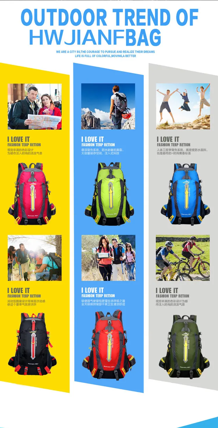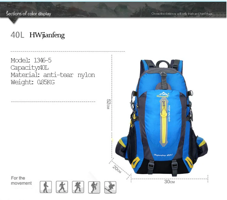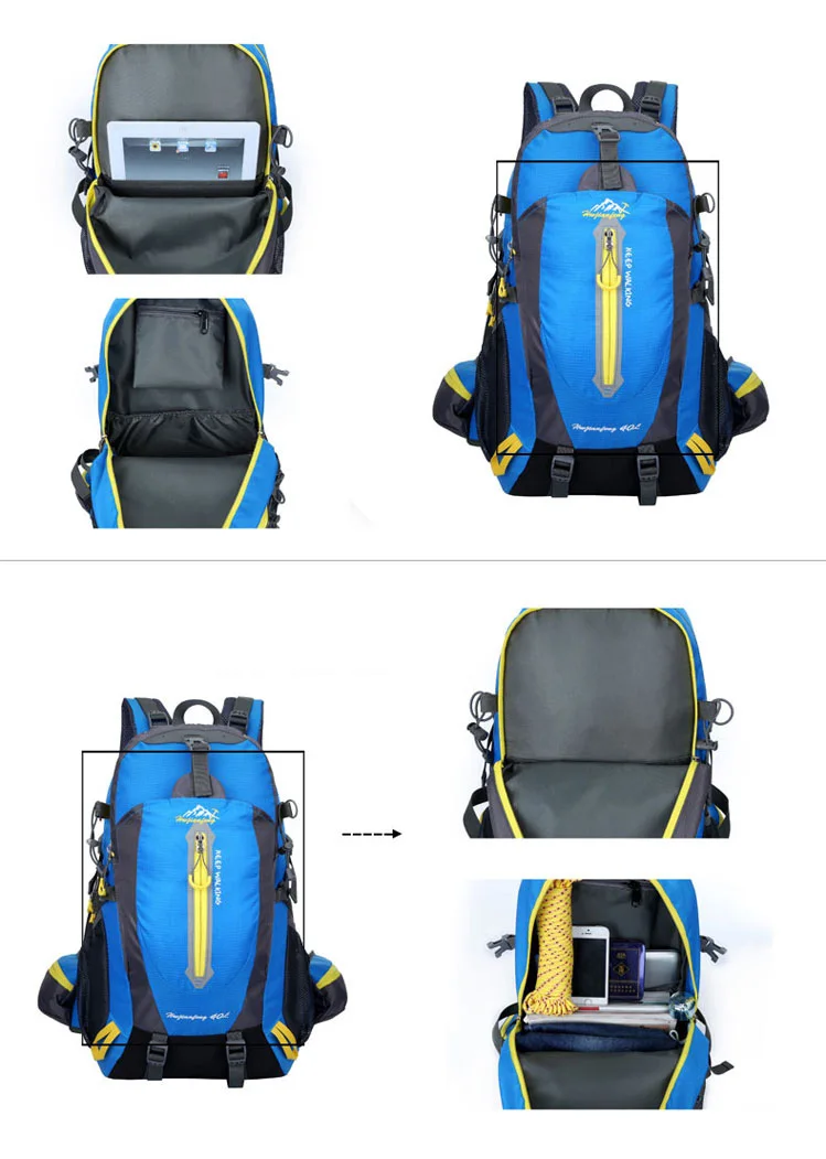 40L рюкзак для путешествий, альпинизма, водонепроницаемый рюкзак, сумка для альпинизма, нейлоновый рюкзак для кемпинга, пешего туризма Характеристика:Плечевые ремни проложены и могут регулироваться петлями, захватывать верхнюю ручку, носить и долговечно.Движение: Пешие прогулки, кемпинг, путешествия, катание на лыжах, скалолазание, бег, физические упражнения и т. Д.Пол: мужчин и женщинМатериал: высококачественный водонепроницаемый нейлонЦвет: черный, синий, зеленый, оранжевый, красный, темно-синий, розово-красный, армейский зеленыйРазмер: 52cmx30cmx20(HxLxw)