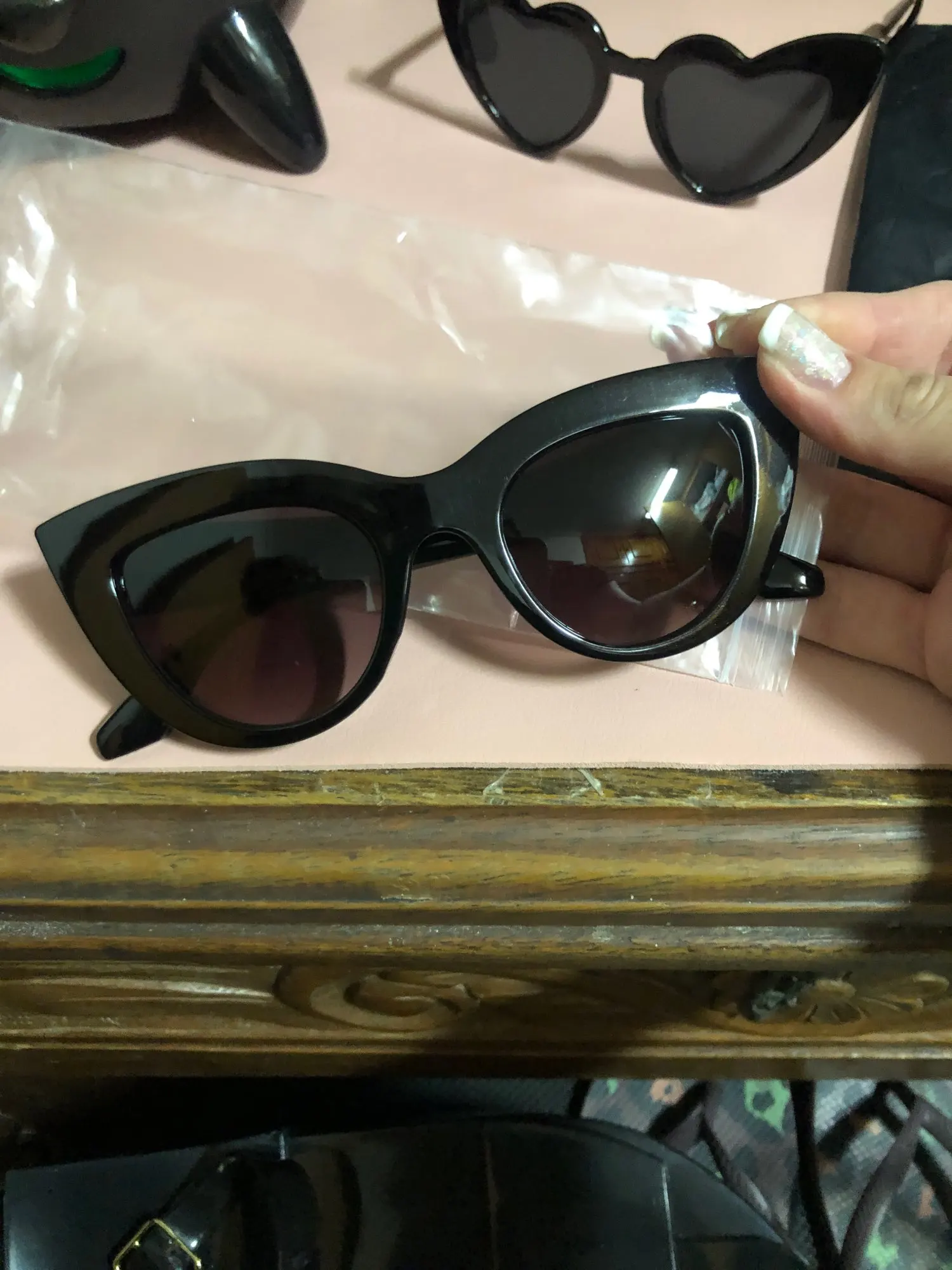 Цвет стекла отличается от того что я заказала, плачтик дешевый, посередине видна половина очков