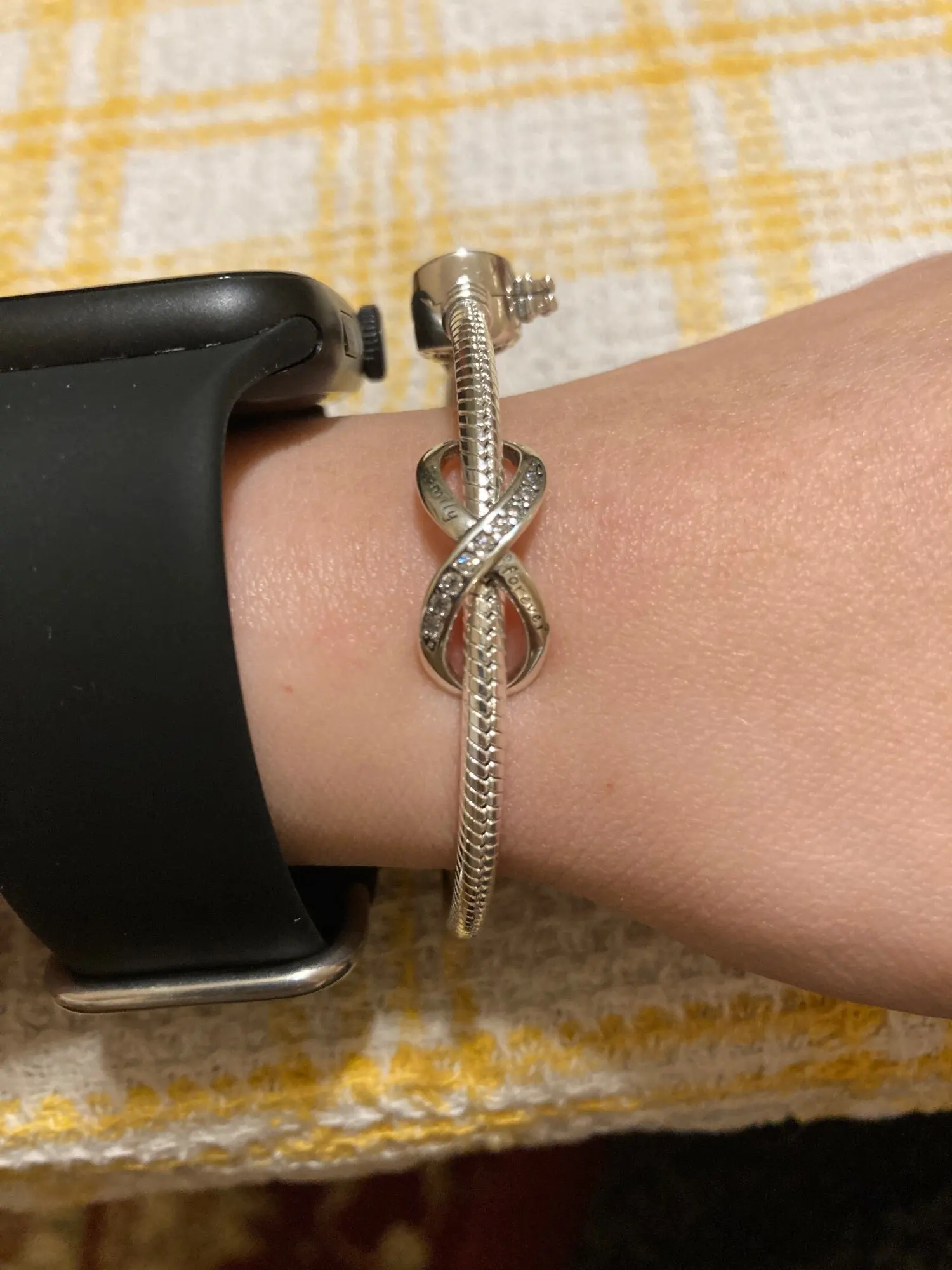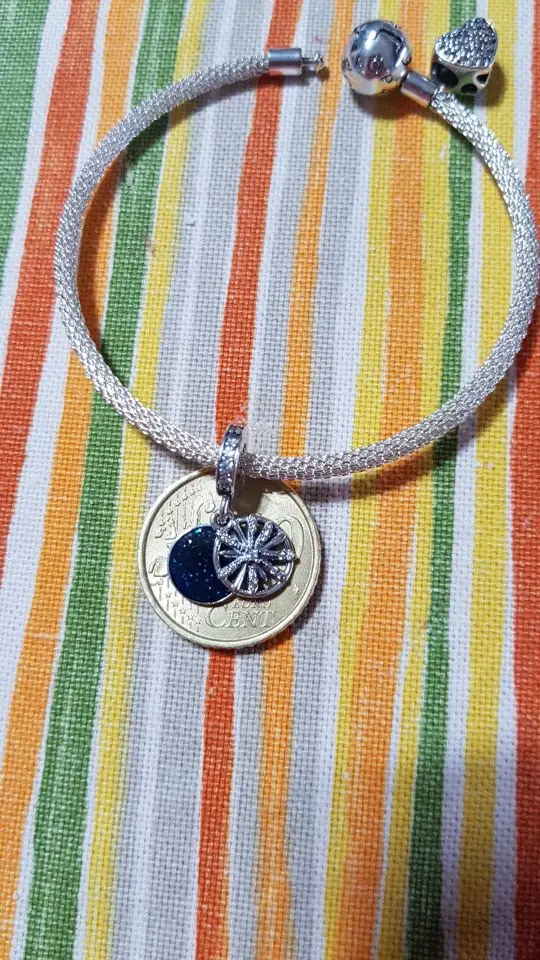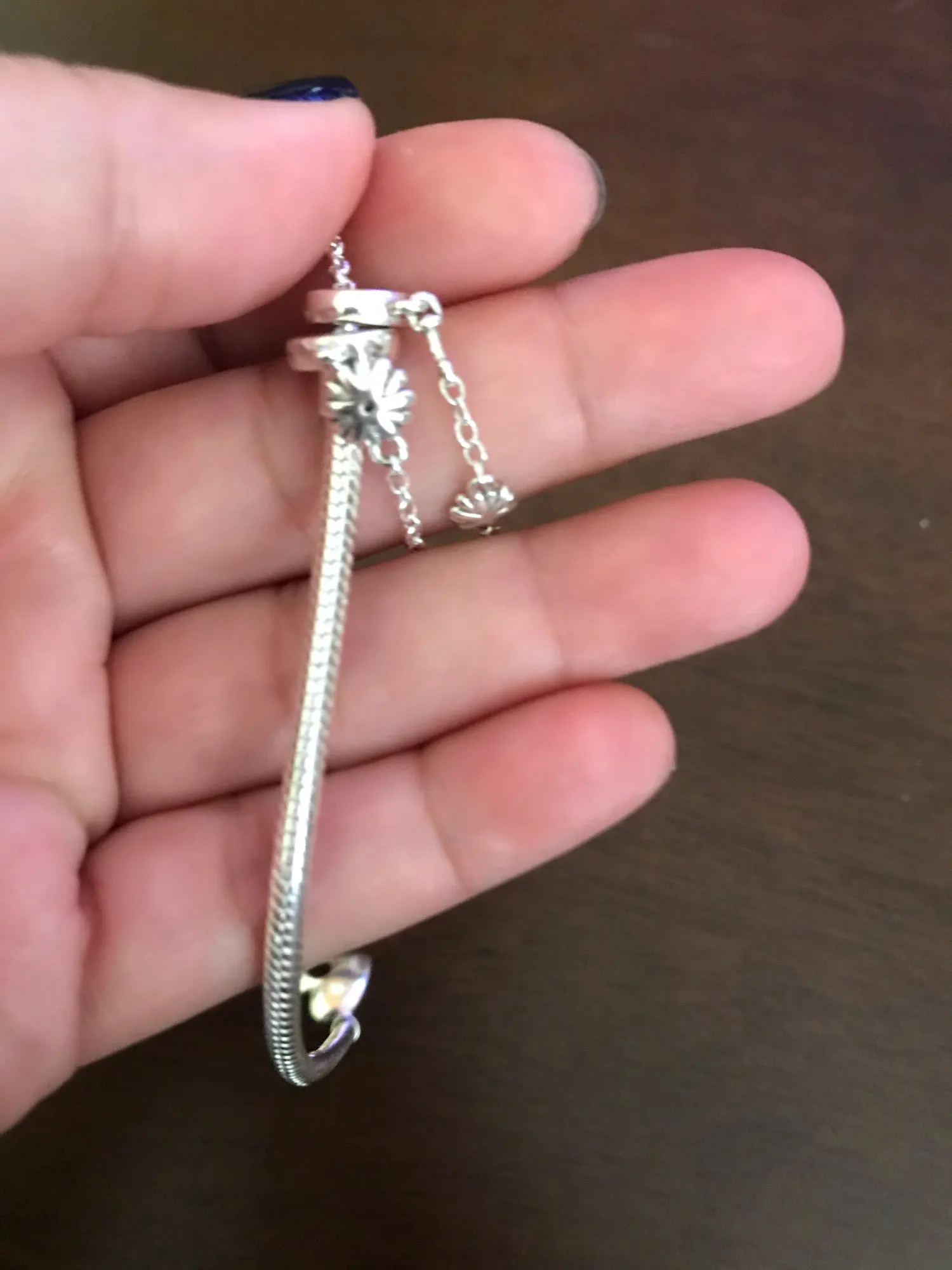 Красивая цепочка безопасности, как ее публикация, серьезная проблема в том, что только одна сторона хорошо вписывается в браслет, другая нет, отверстие меньше и застряло в начале браслета, и теперь я не могу его вытащить, он был полностью застрял